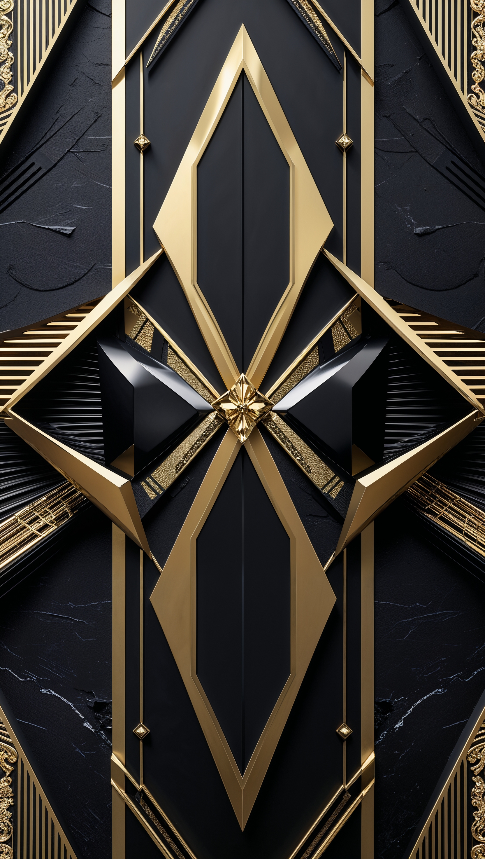 1664x2944 Create a black and gold wallpaper with both traditional and modern patterns