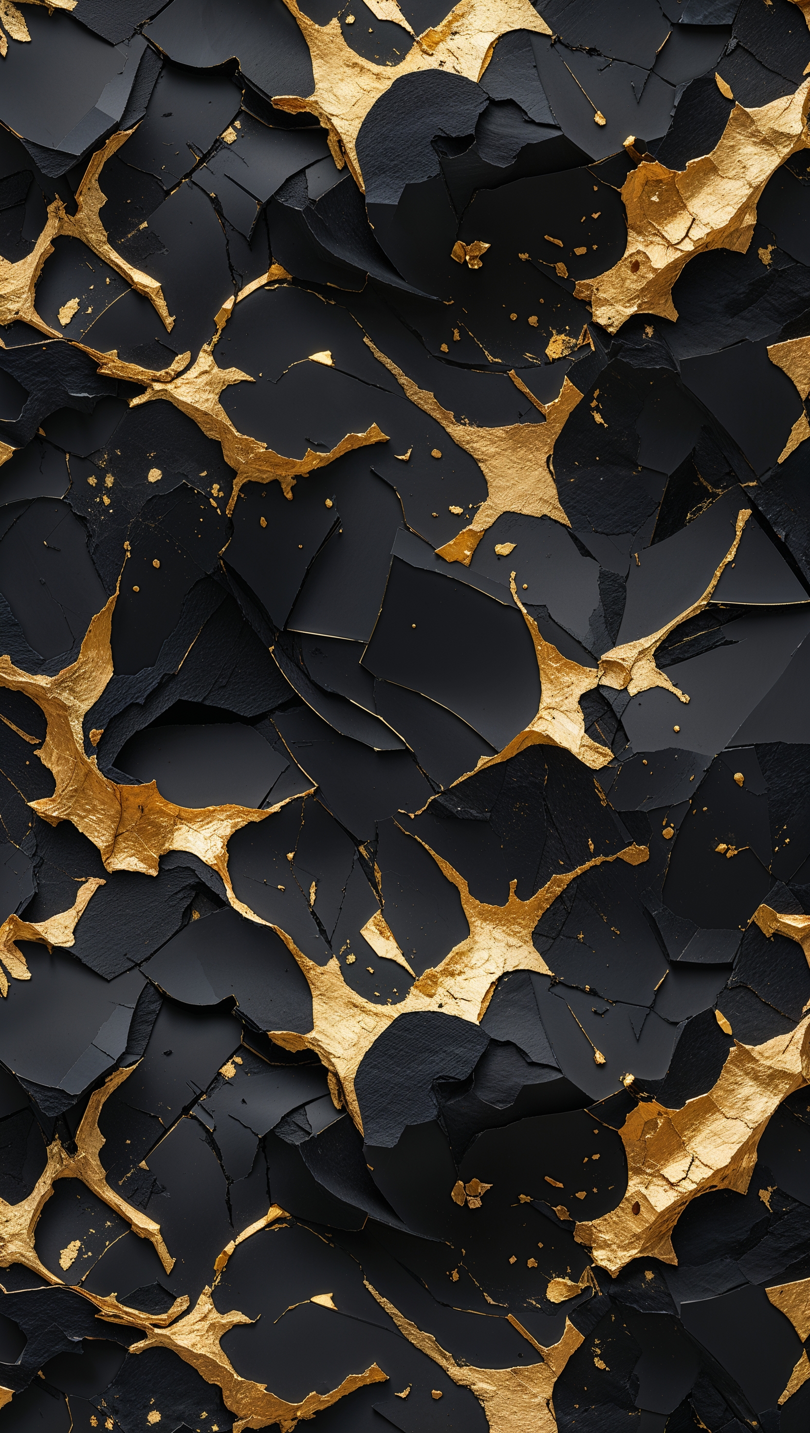 1664x2944 Design a black and gold wallpaper with broken and deformed patterns