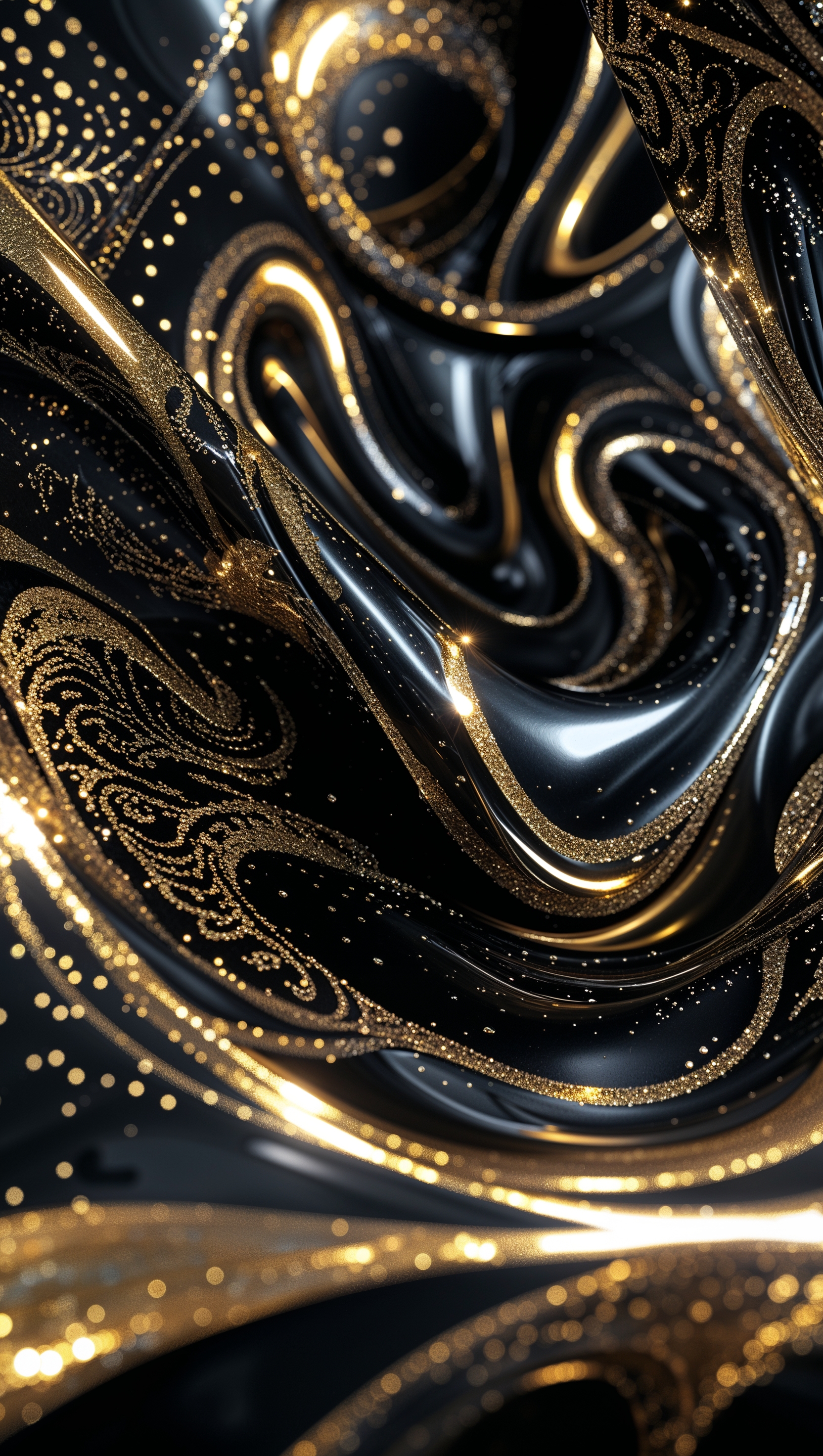 1664x2944 Create a black and gold wallpaper with glossy and shiny effects