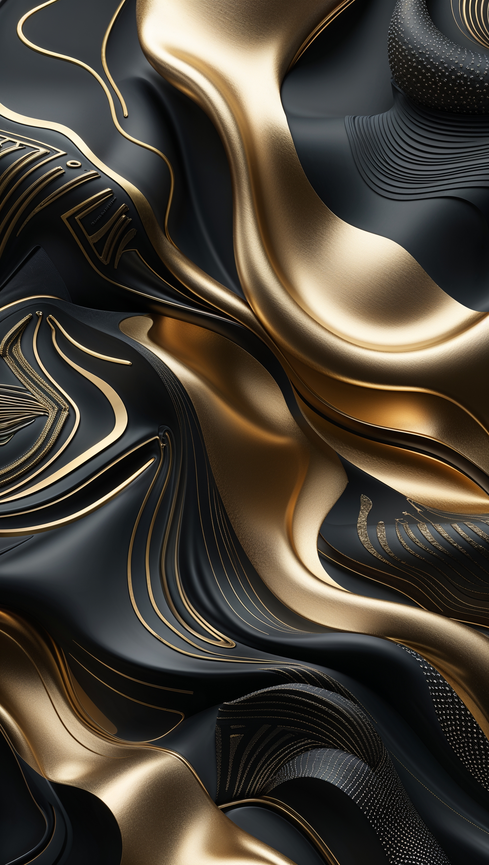 1664x2944 Create a black and gold wallpaper with flowing lines