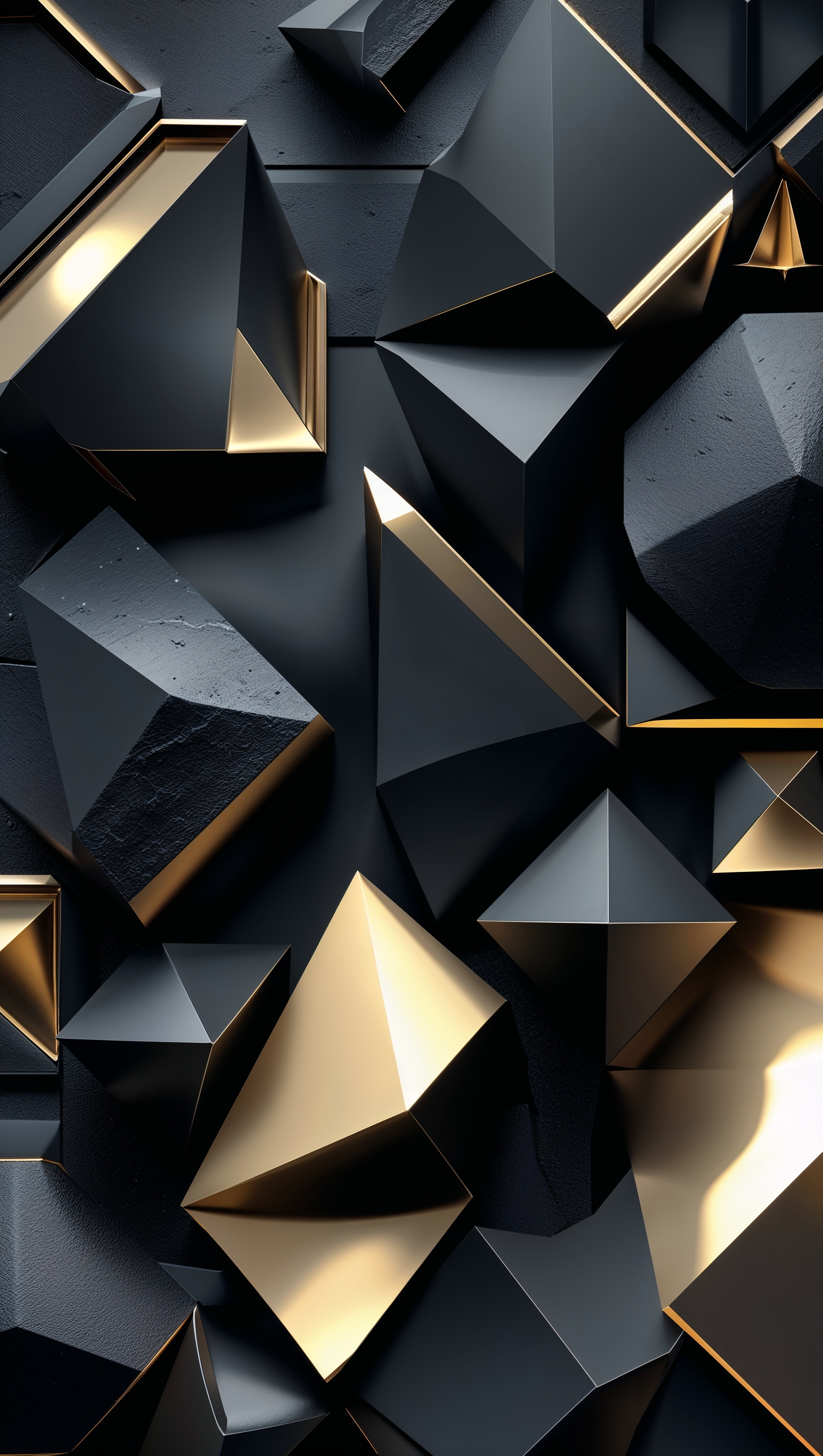 1664x2944 Generate a black and gold wallpaper with 3D geometric shapes