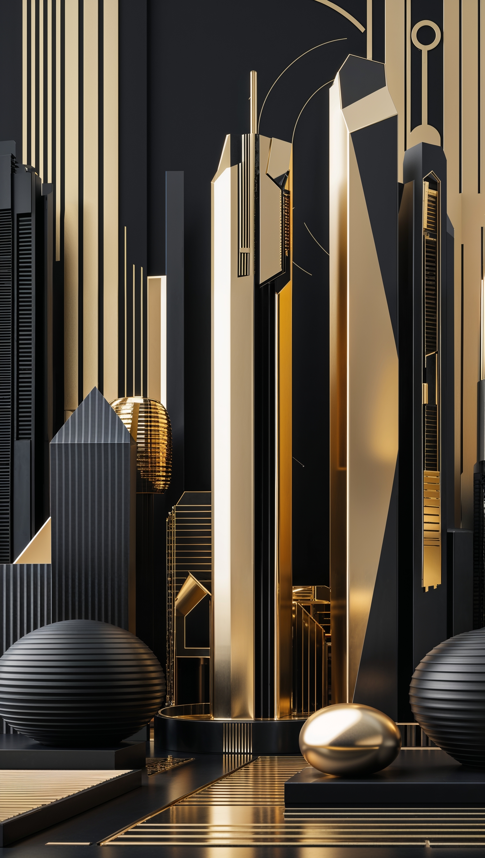 1664x2944 Create a black and gold wallpaper inspired by modern architecture