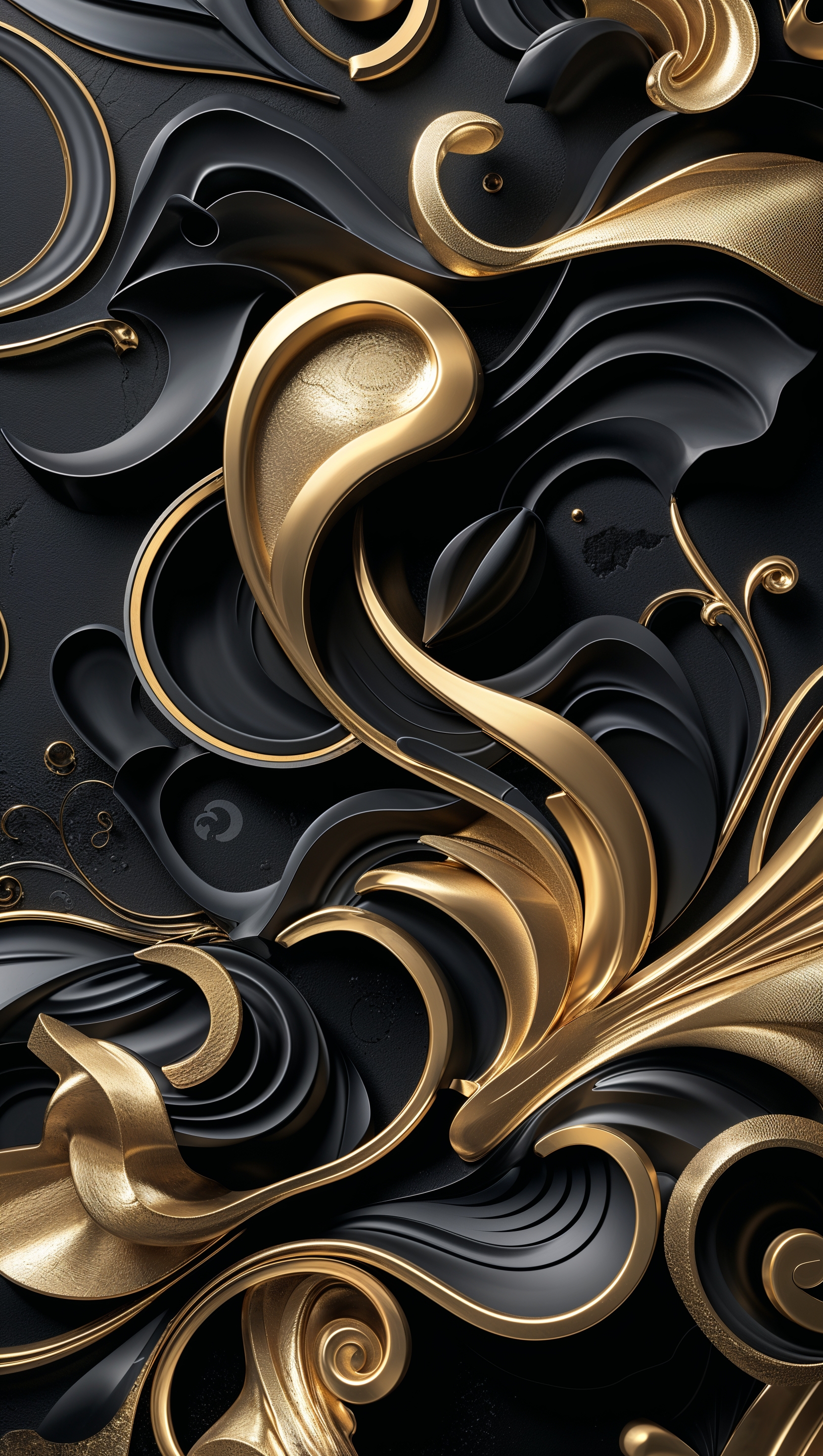 1664x2944 Create a black and gold wallpaper with a 3D prominent design