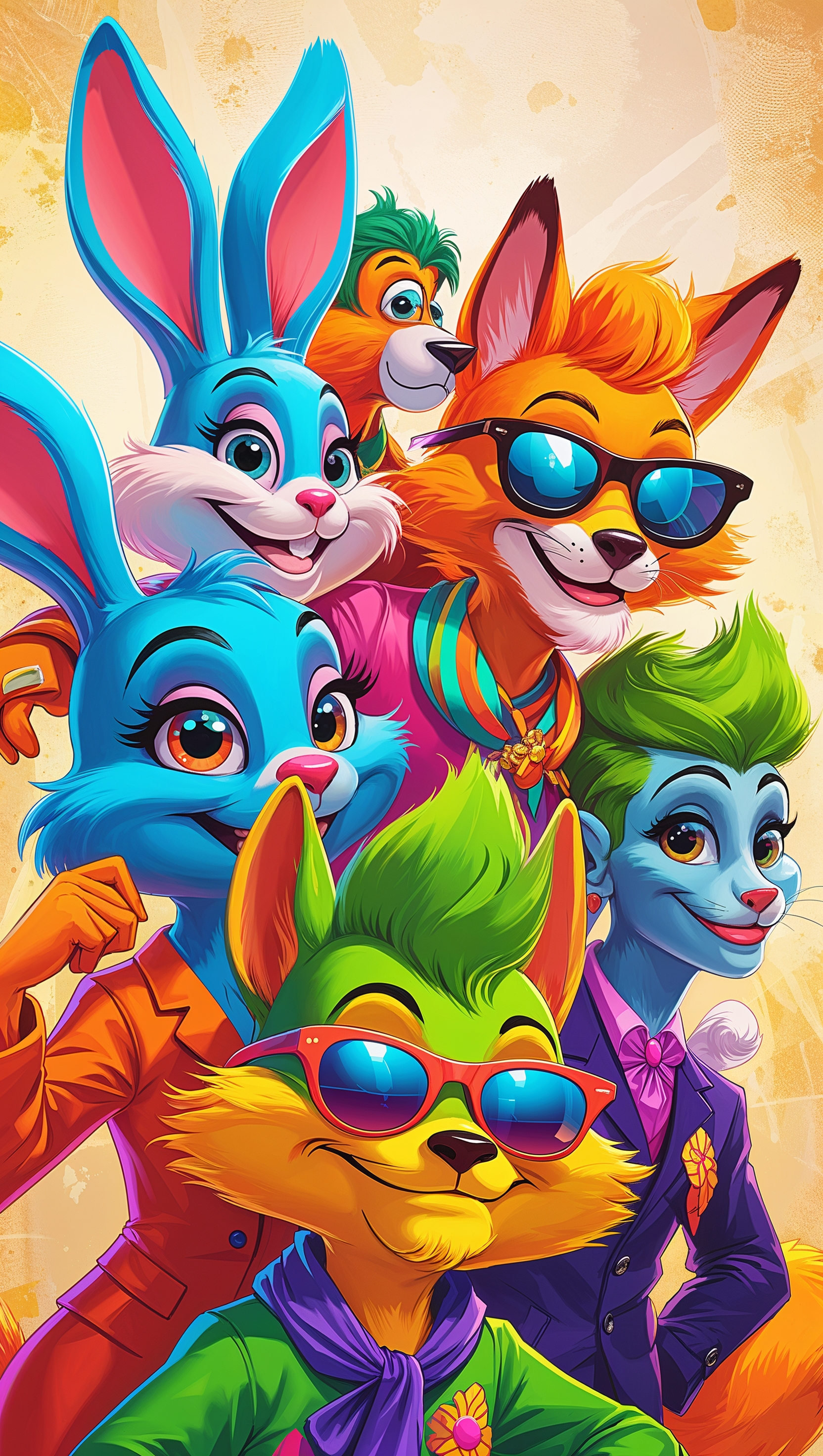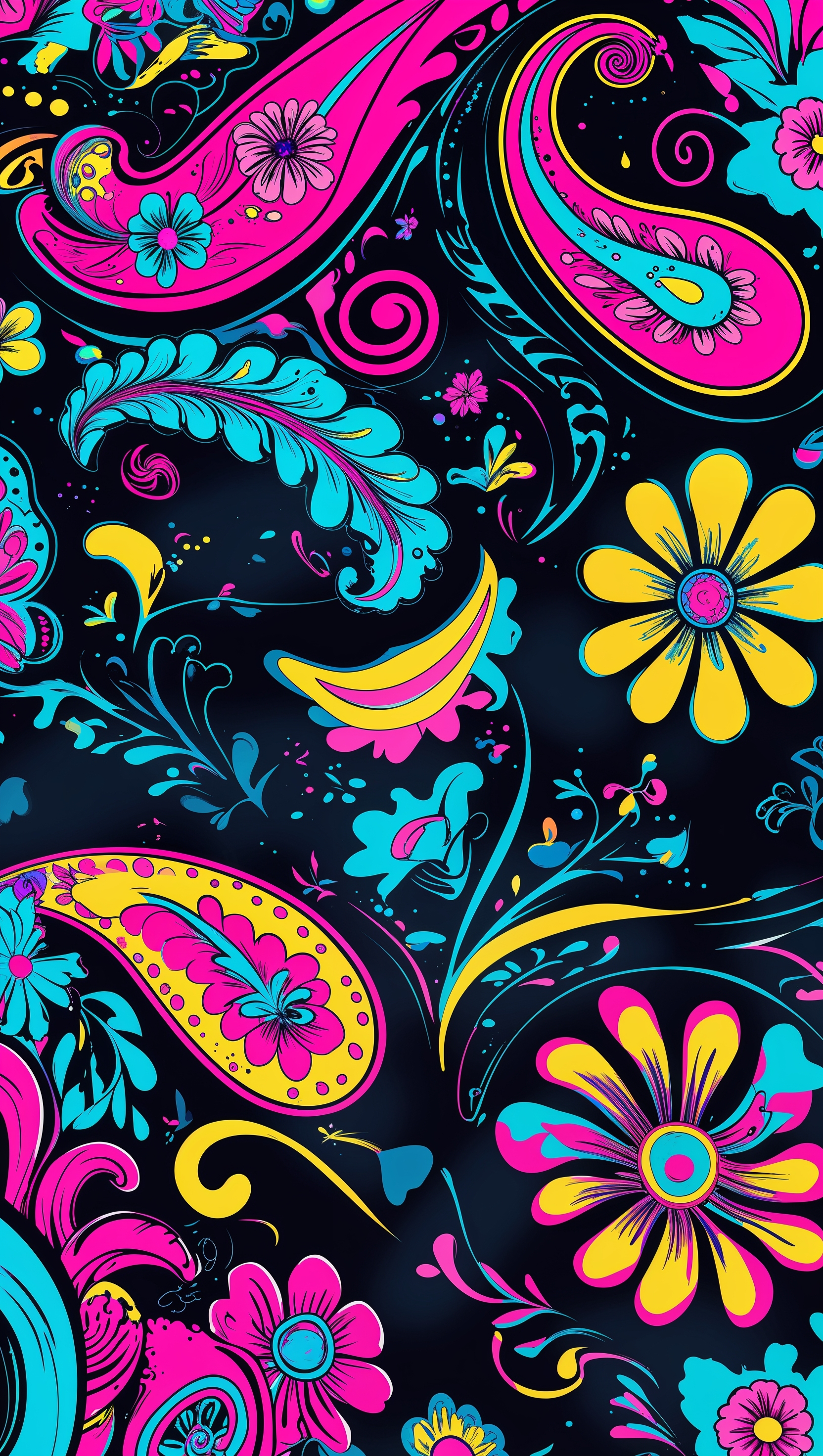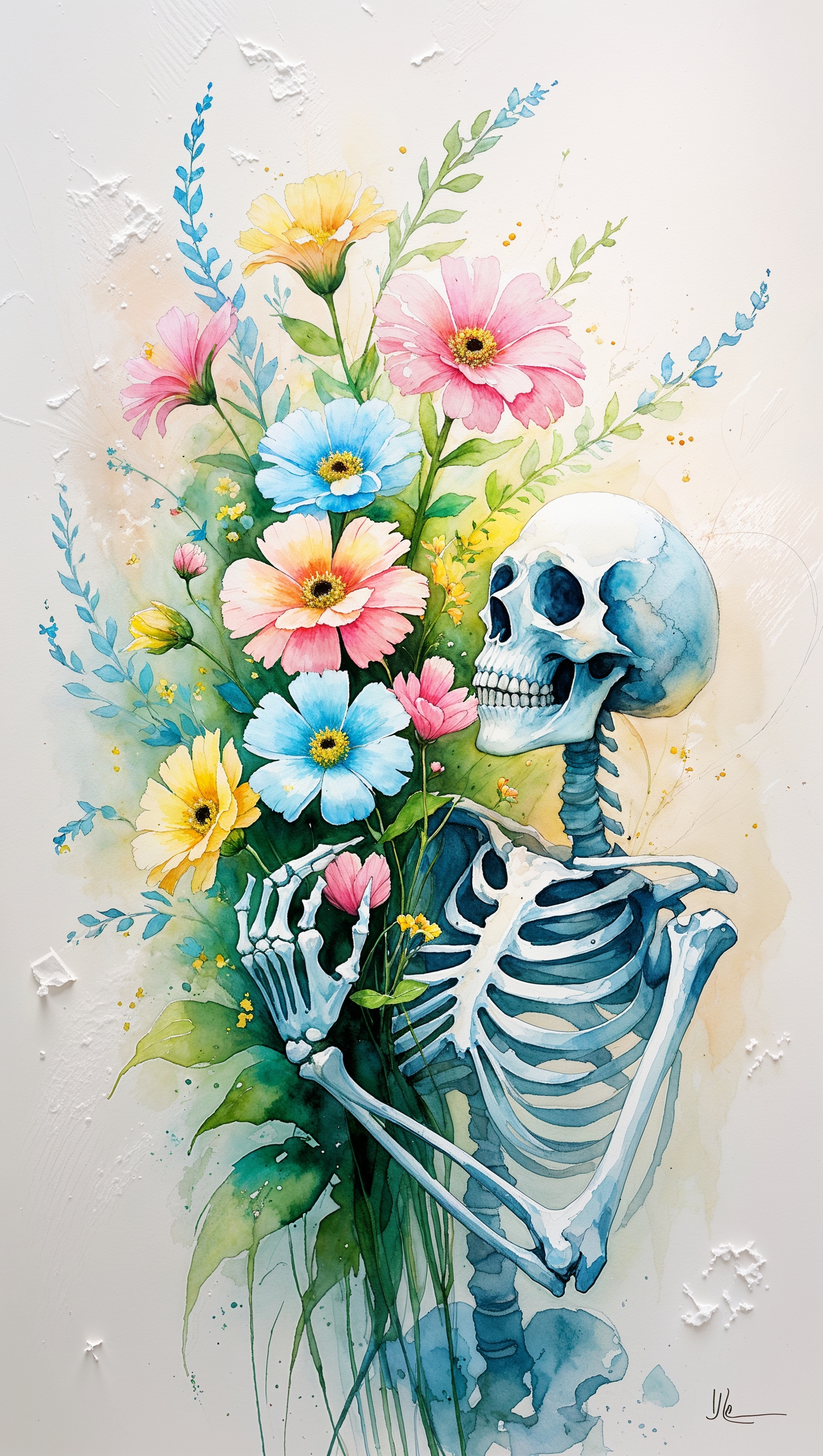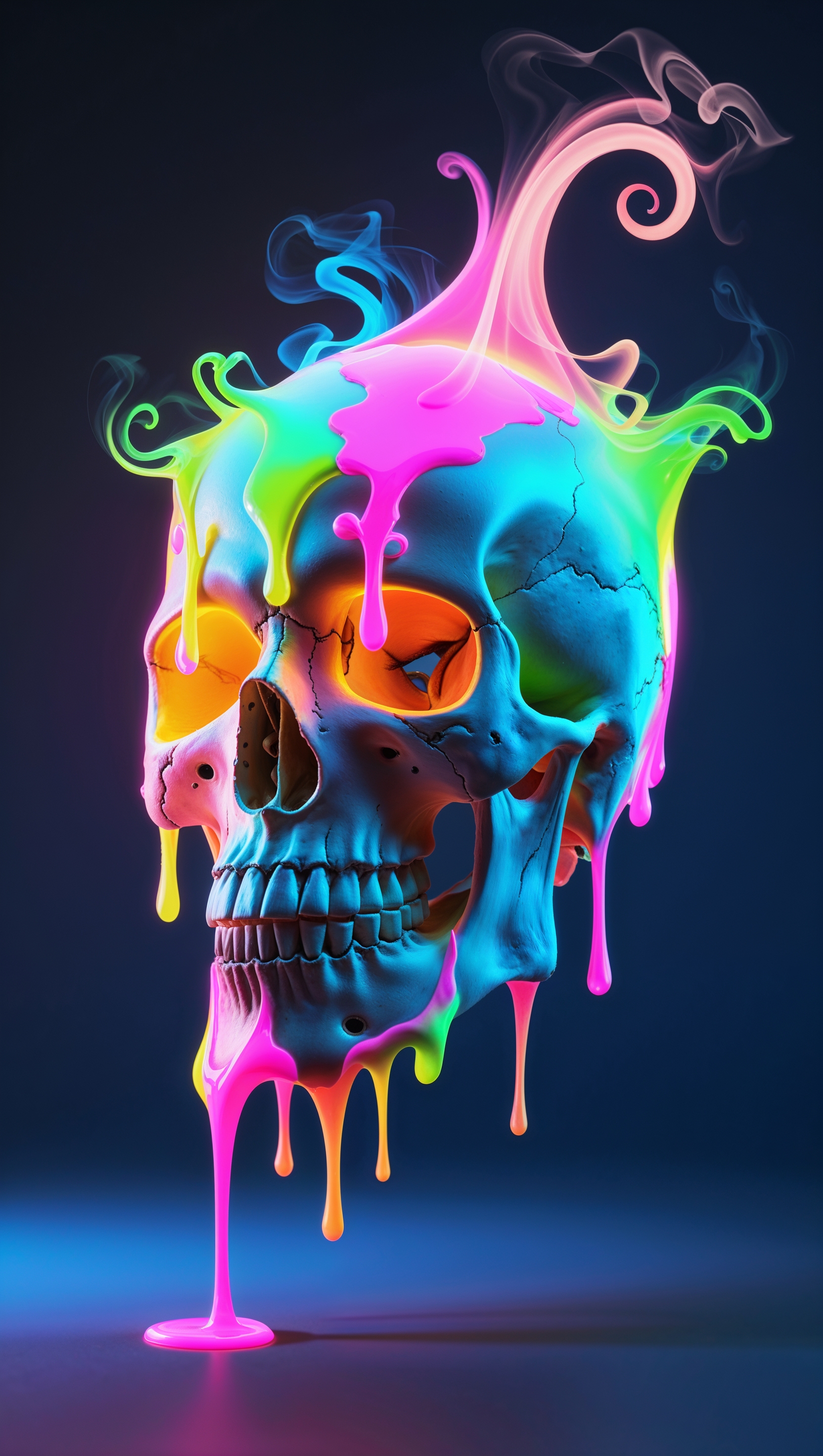 1664x2944 Colorful skeleton with flowers in psychedelic style