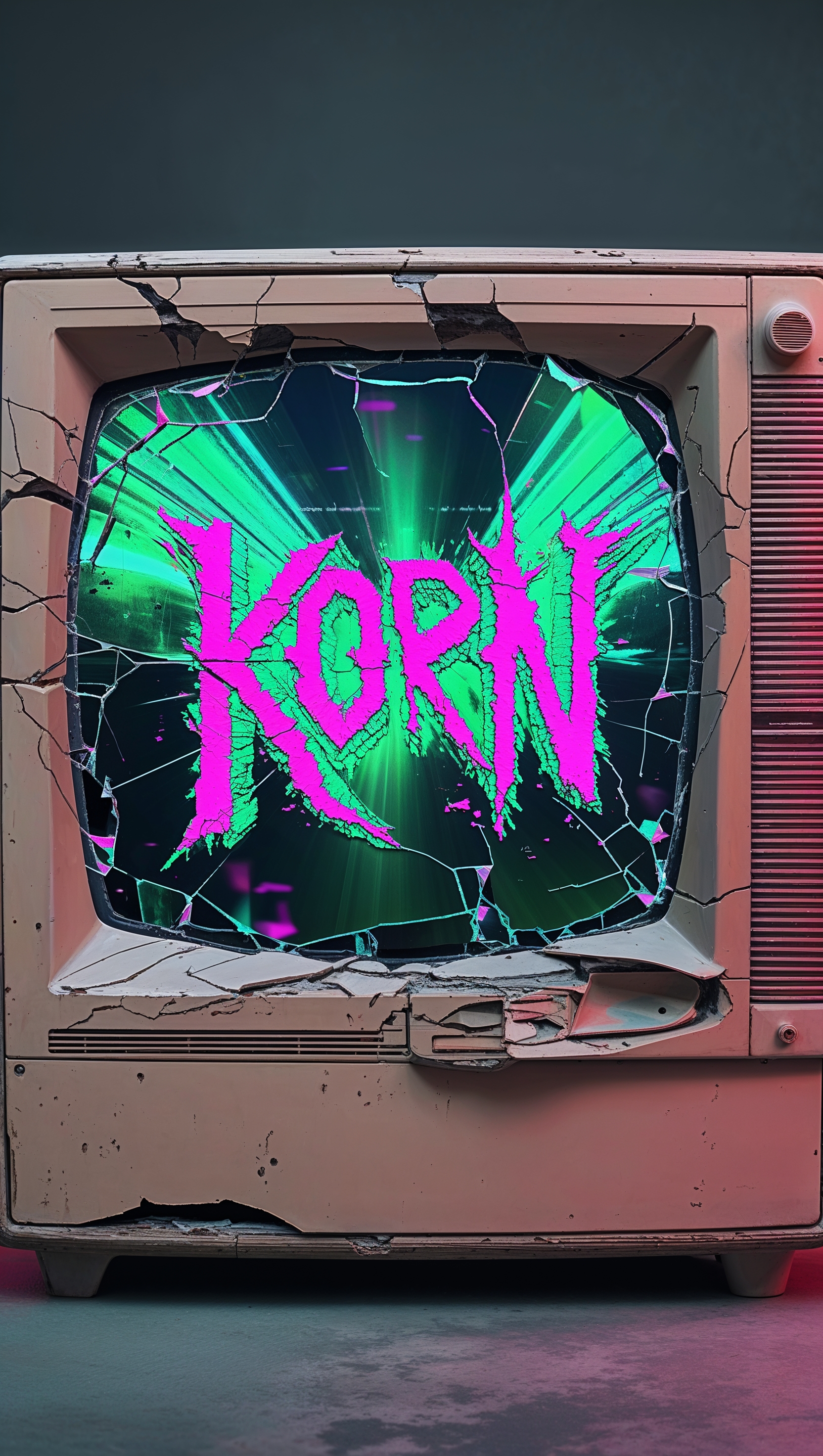 1664x2944 Broken TV showing Korn video glitch, retro vibe, iPhone wallpaper