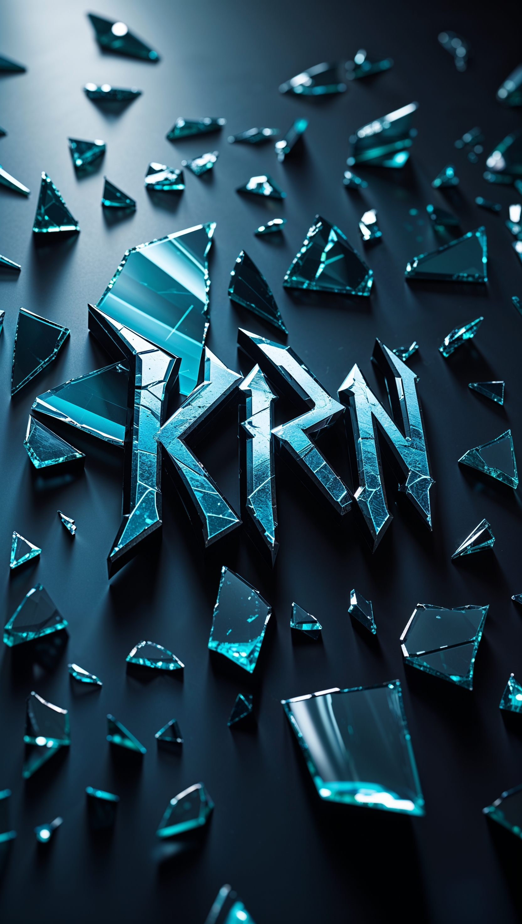 1664x2944 Korn logo made of shattered glass, dramatic lighting, iPhone wallpaper