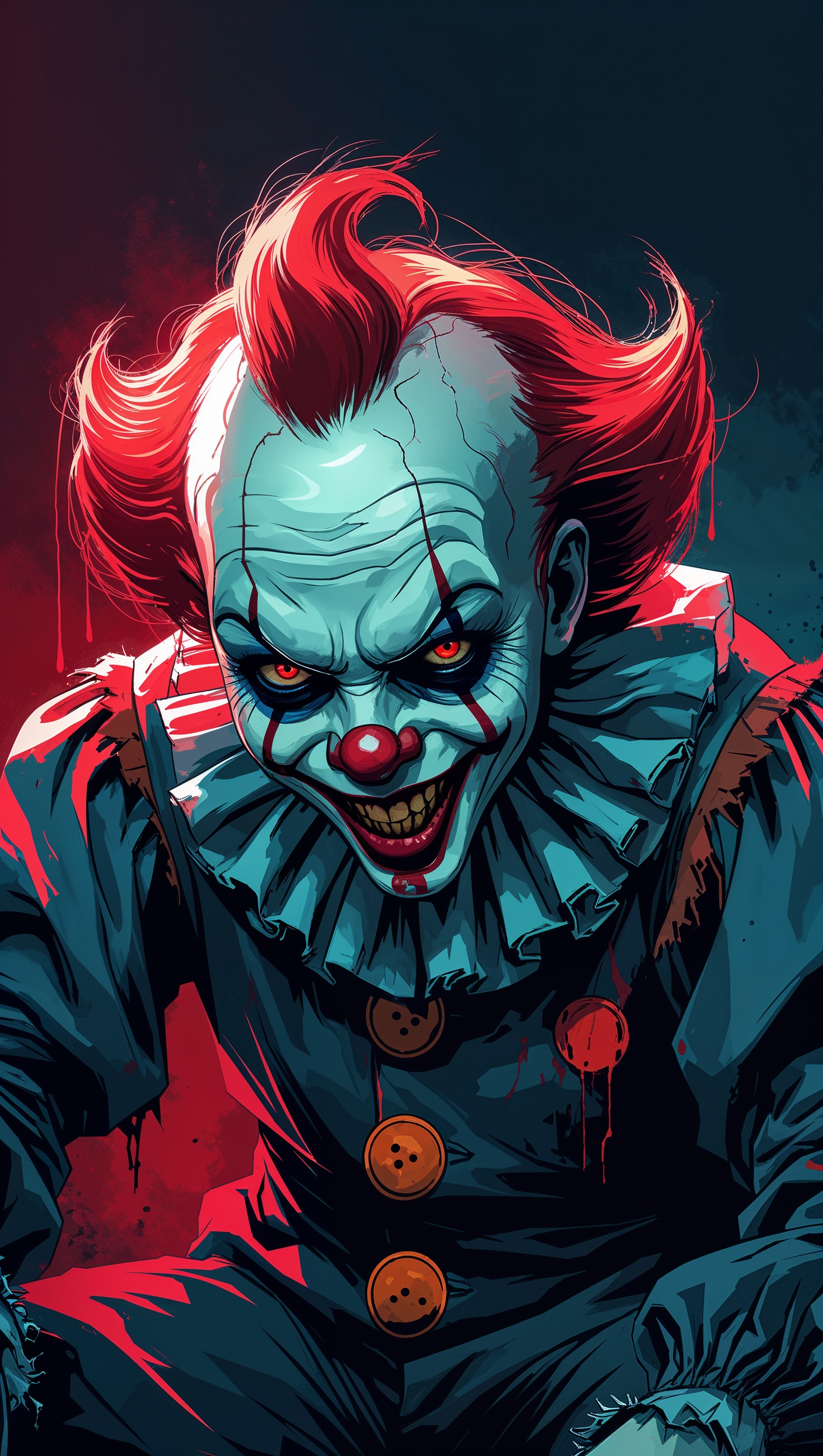 1664x2944 Animated horror clown inspired by Korn, creepy design, iPhone wallpaper