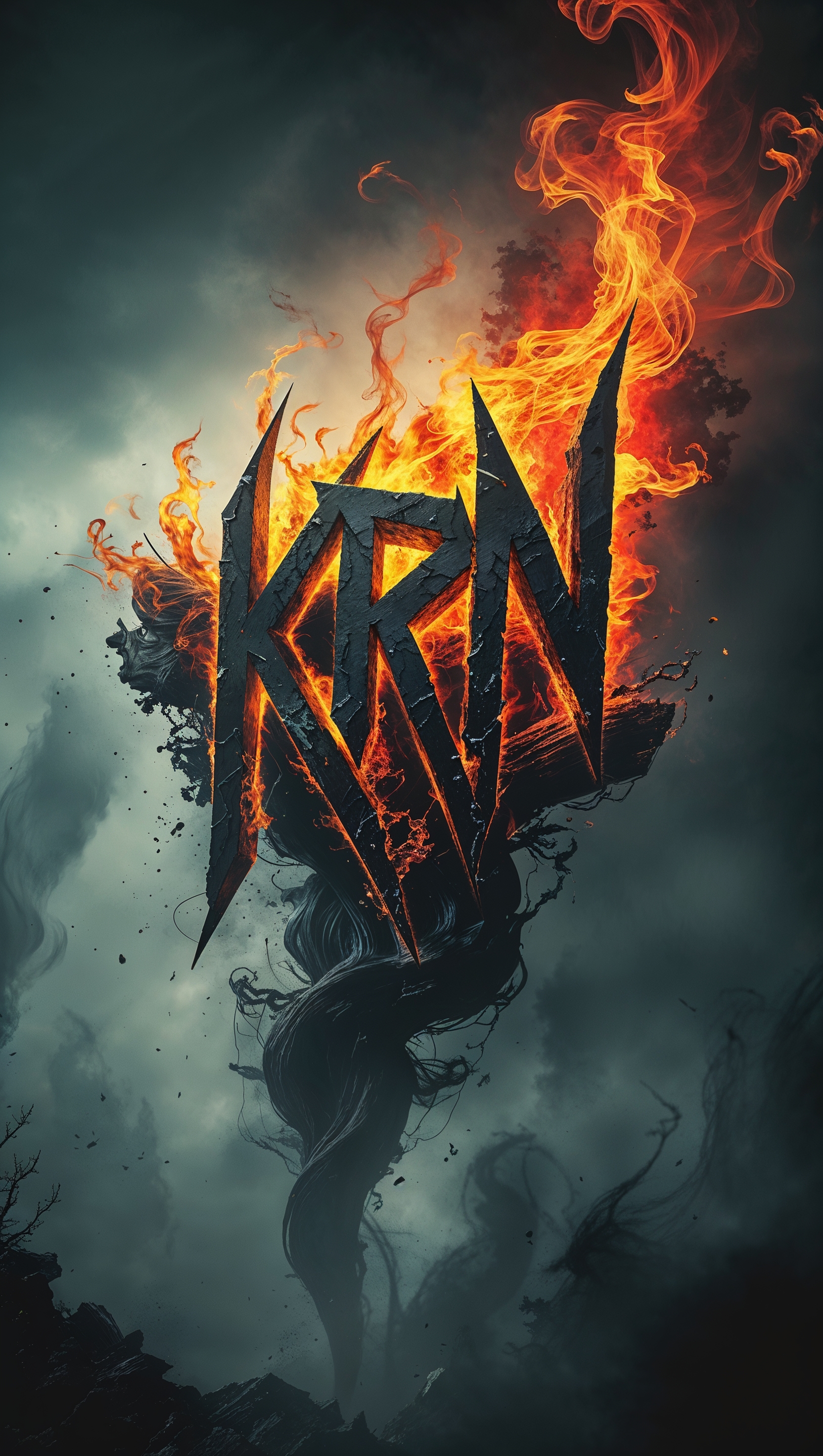 1664x2944 Korn logo made of fire and ash, dark fantasy vibe, iPhone wallpaper