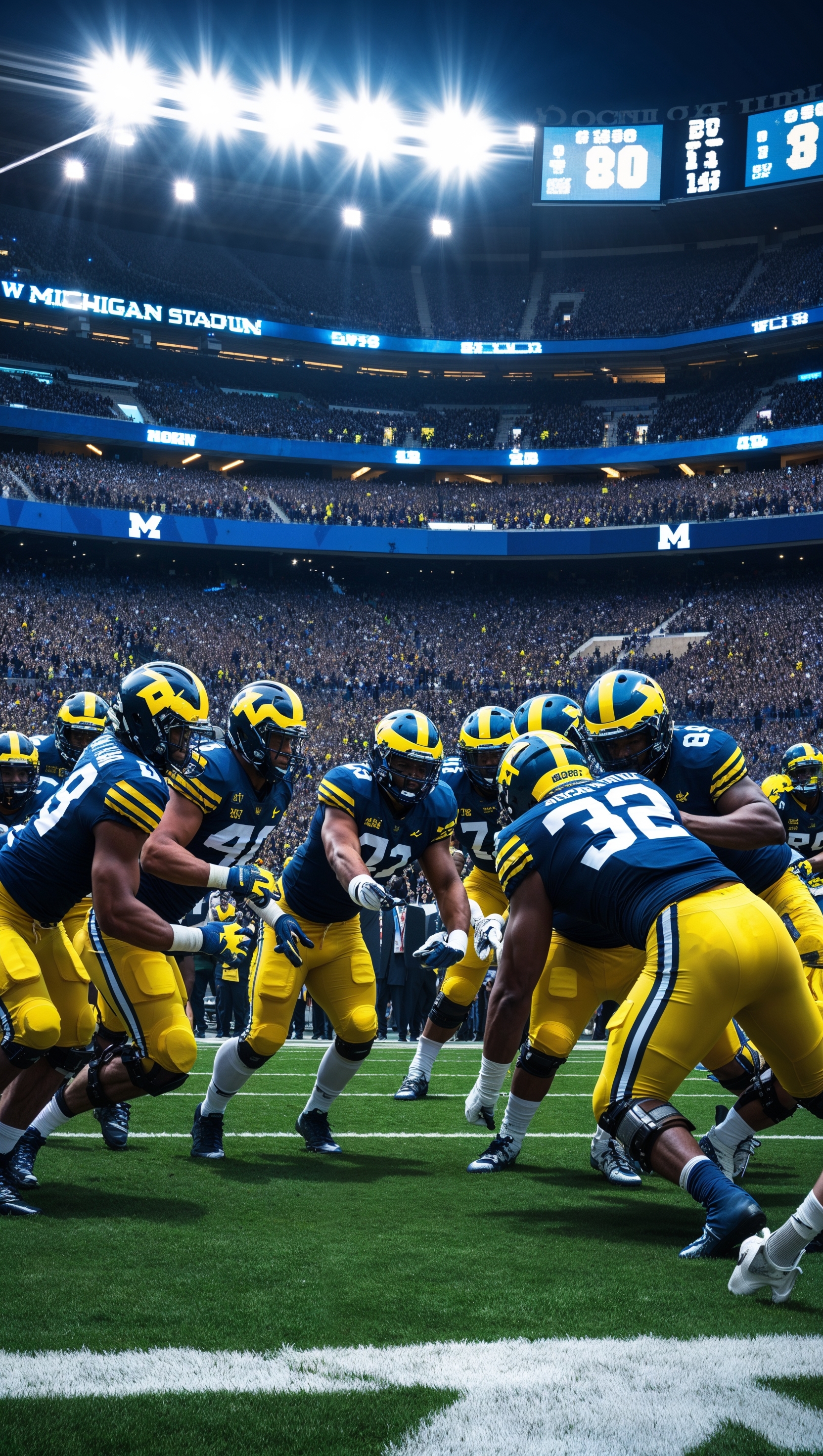 1664x2944 A picture of Michigan football team playing in a large stadium at night