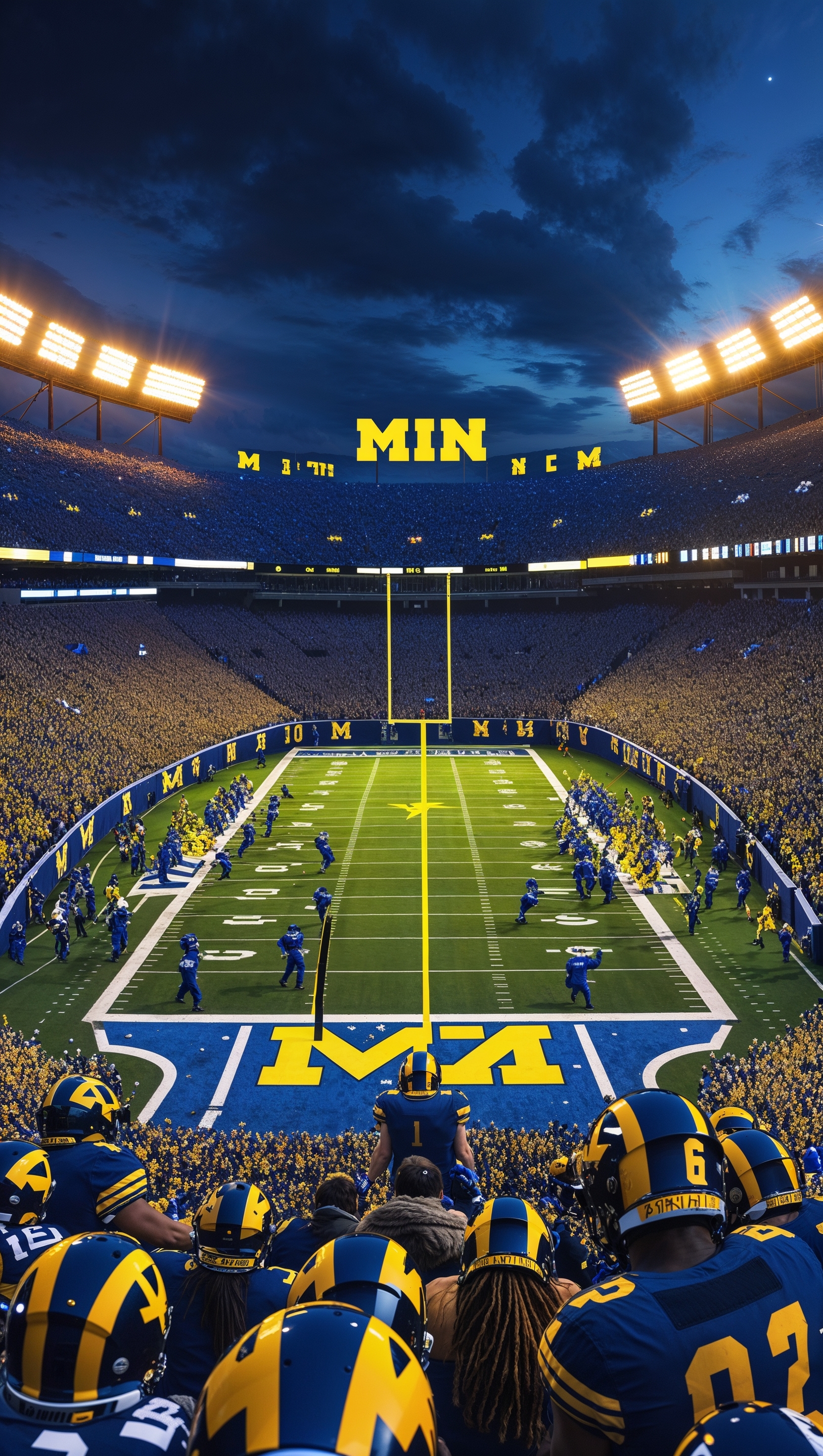 1664x2944 An image of a Michigan football game at night with stadium lighting