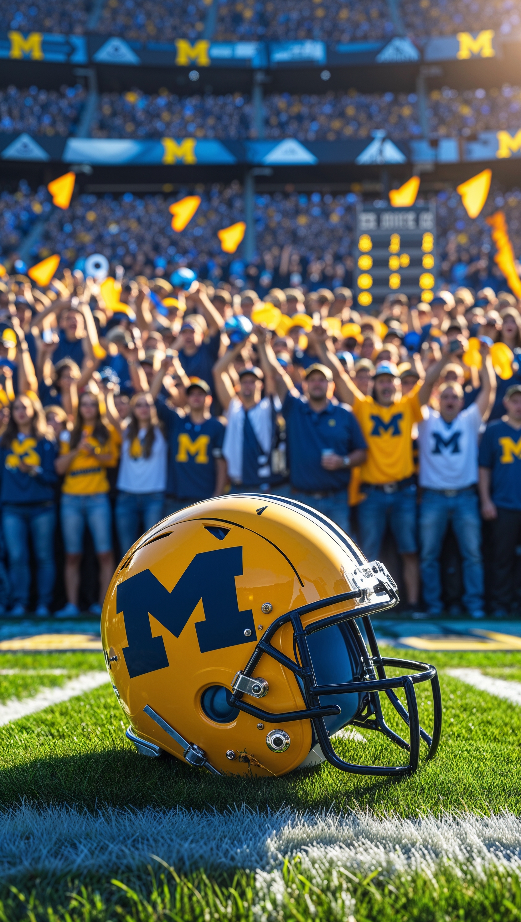 1664x2944 An image of a Michigan football with a stadium full of spectators in the background