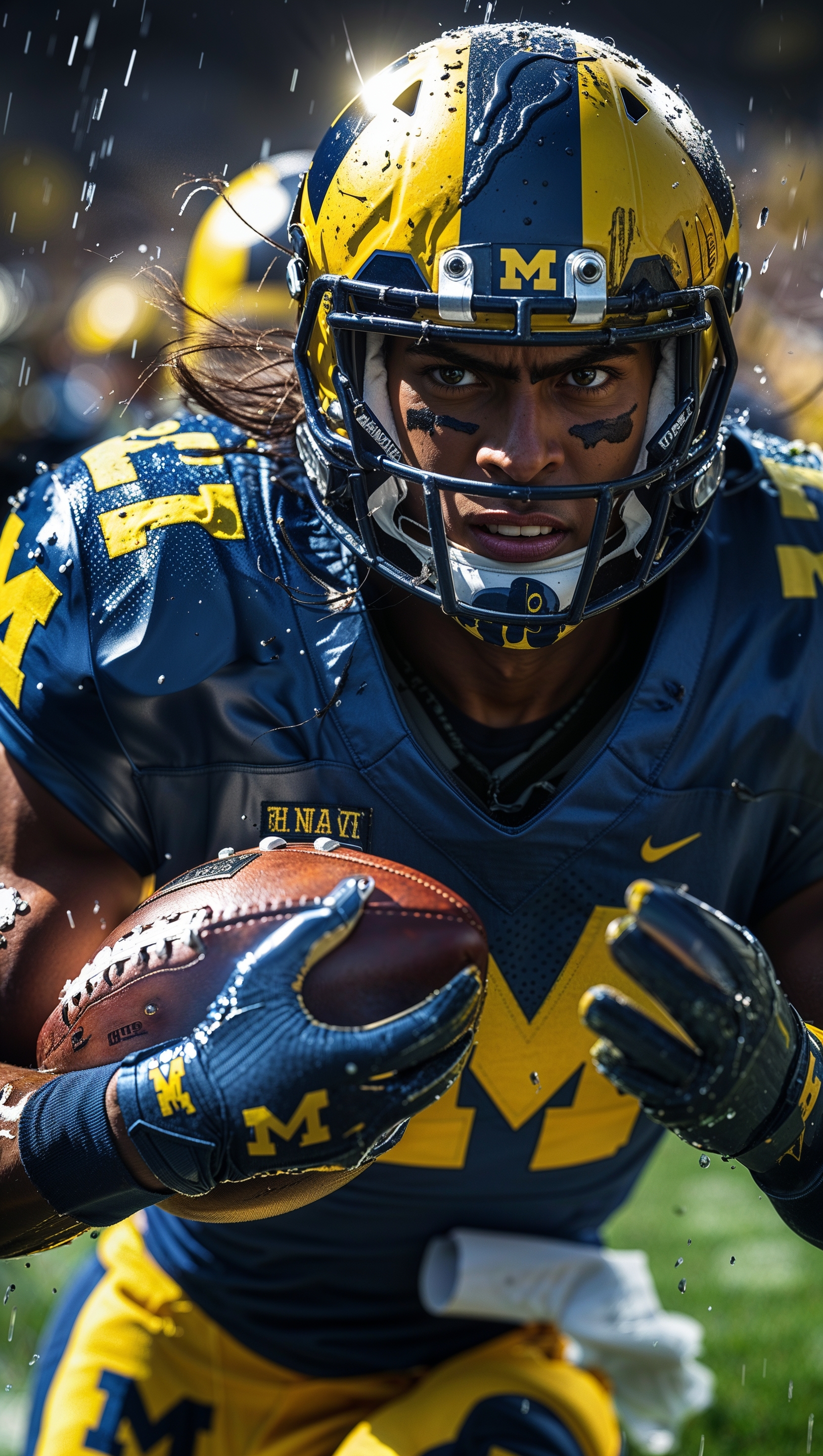 1664x2944 A close-up of a Michigan football player running with the ball in hand