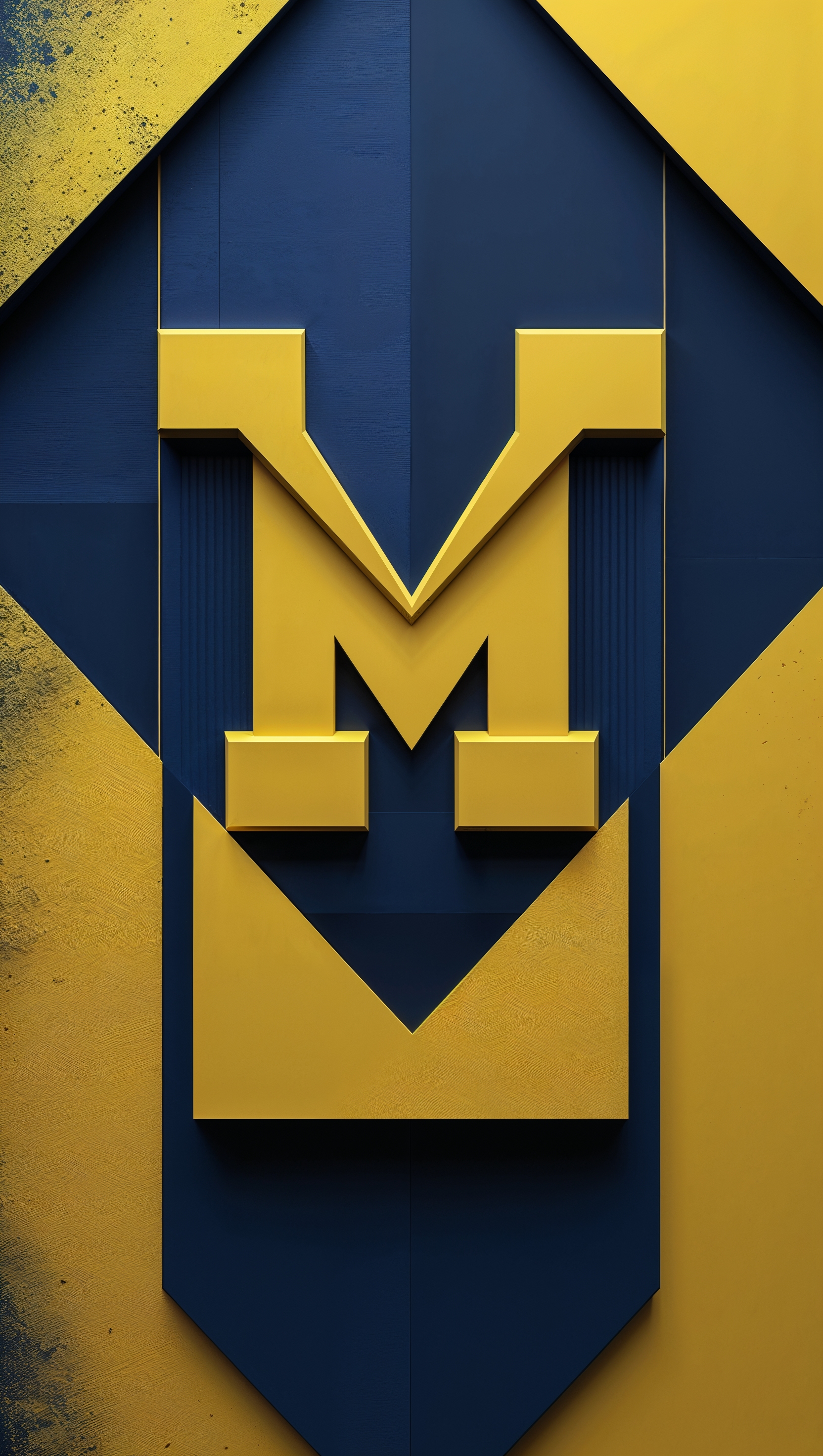 1664x2944 An image of Michigan football team logo with a dark background and yellow and blue stripes