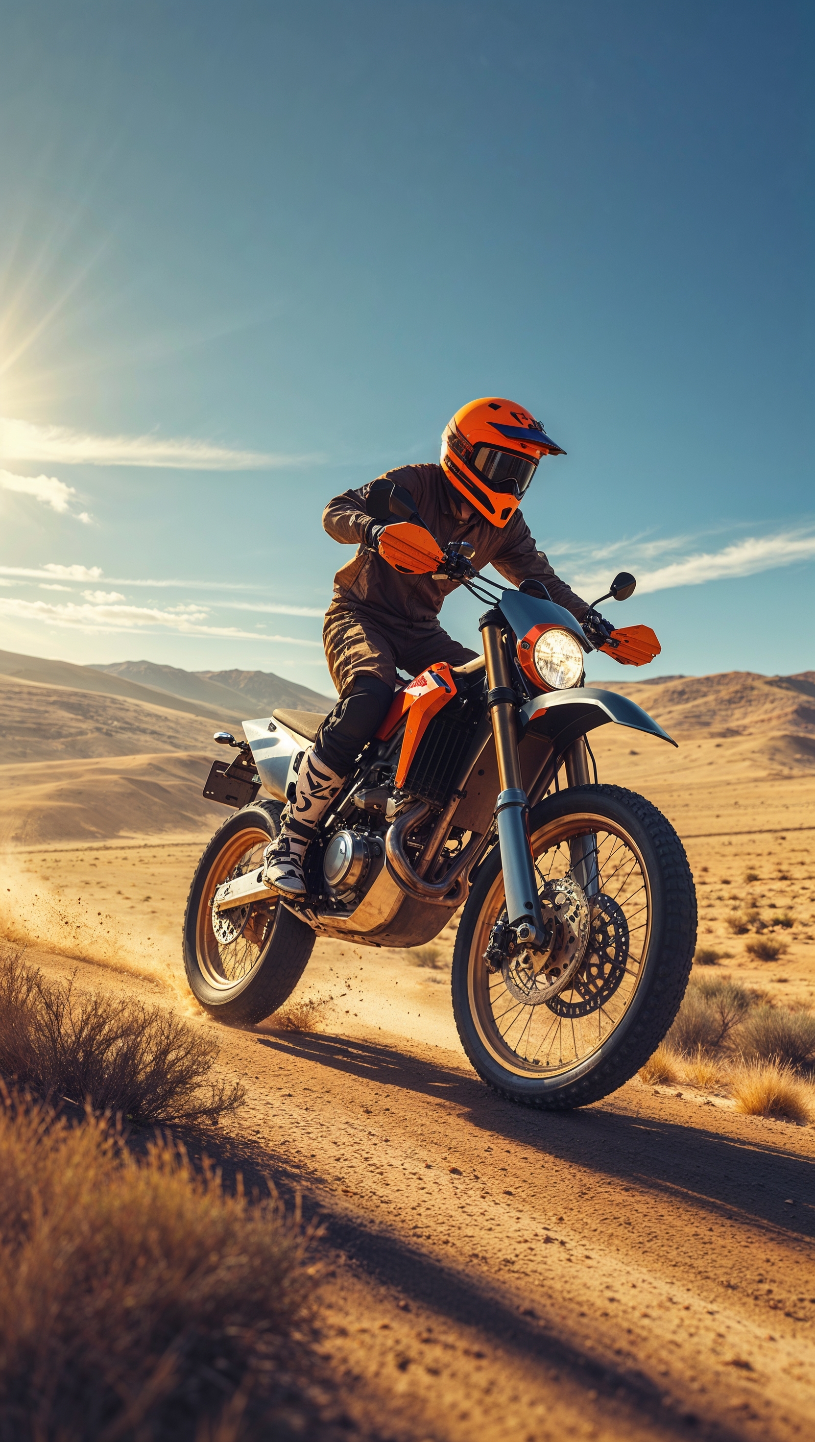 1664x2944 A dirt bike riding across a vast plain with a blue sky, for an iPhone wallpaper