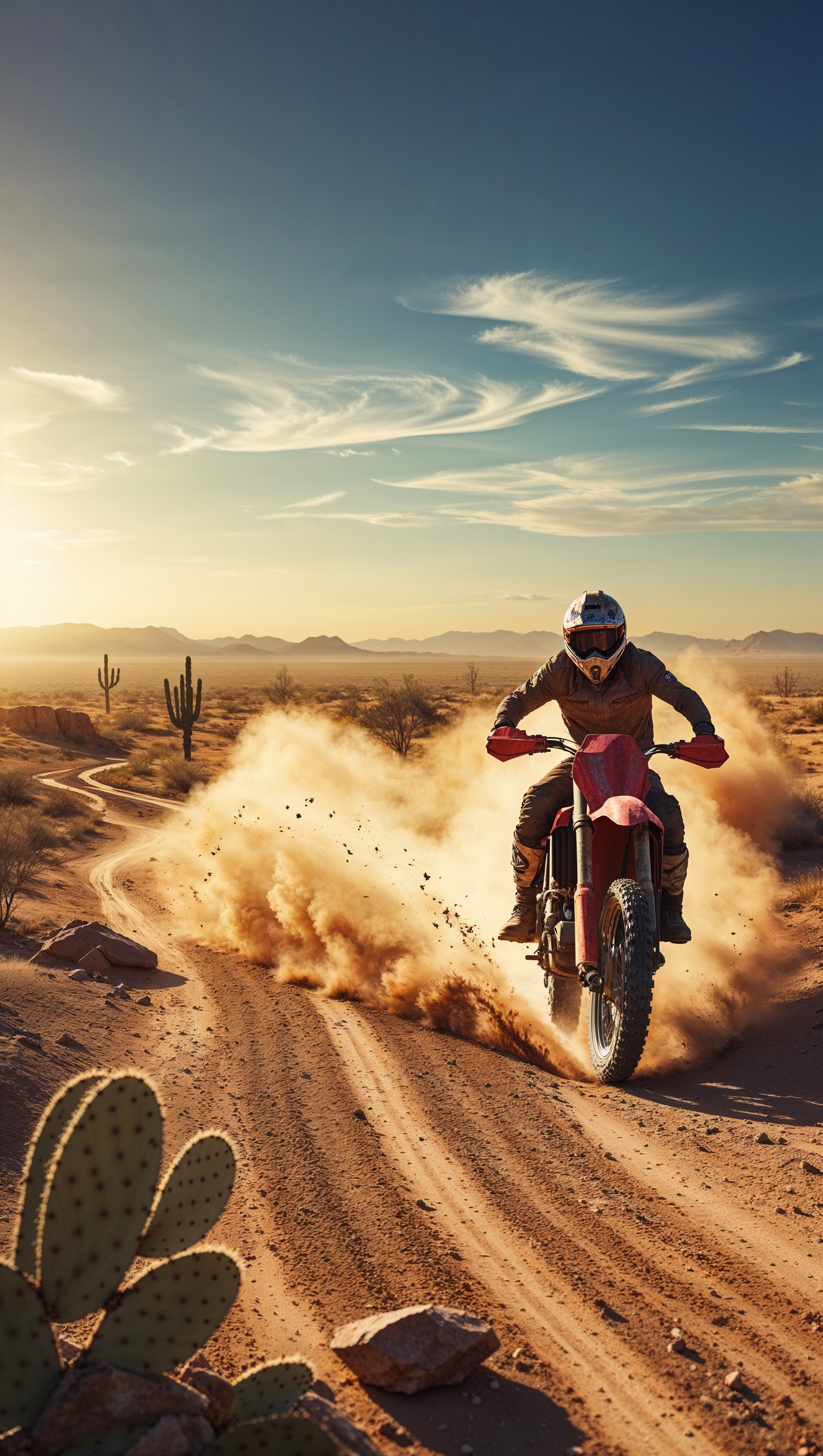 1664x2944 A dirt bike riding on a dirt path in the desert, for an iPhone wallpaper