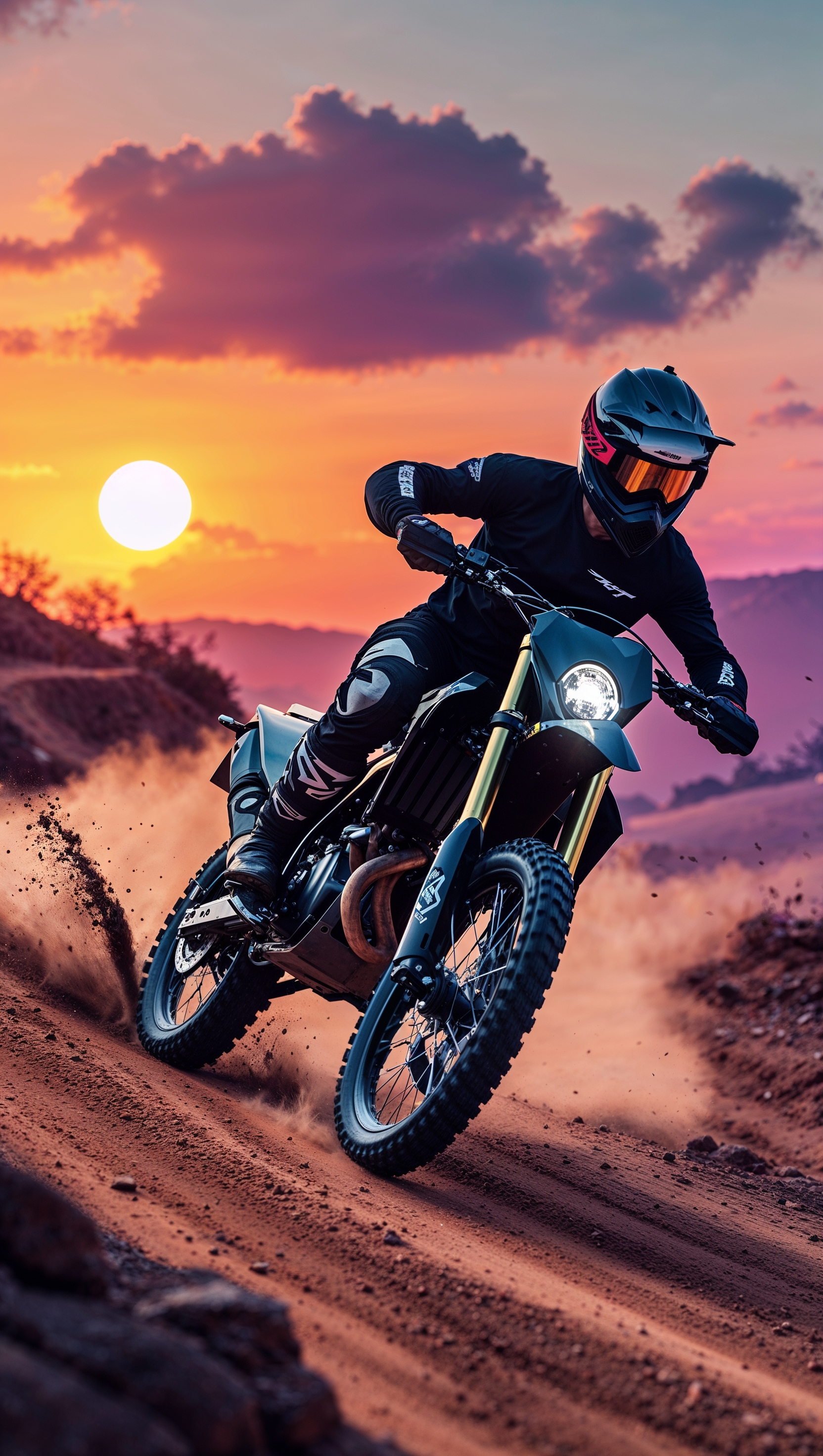 1664x2944 A dirt bike riding on a dirt road with sunset lighting, for an iPhone wallpaper
