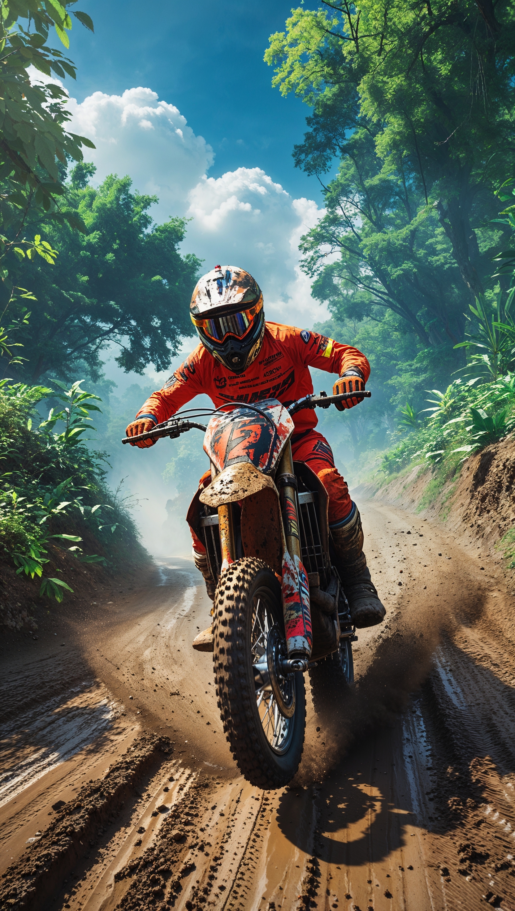 1664x2944 A dirt bike riding on a wet trail after the rain, for an iPhone wallpaper