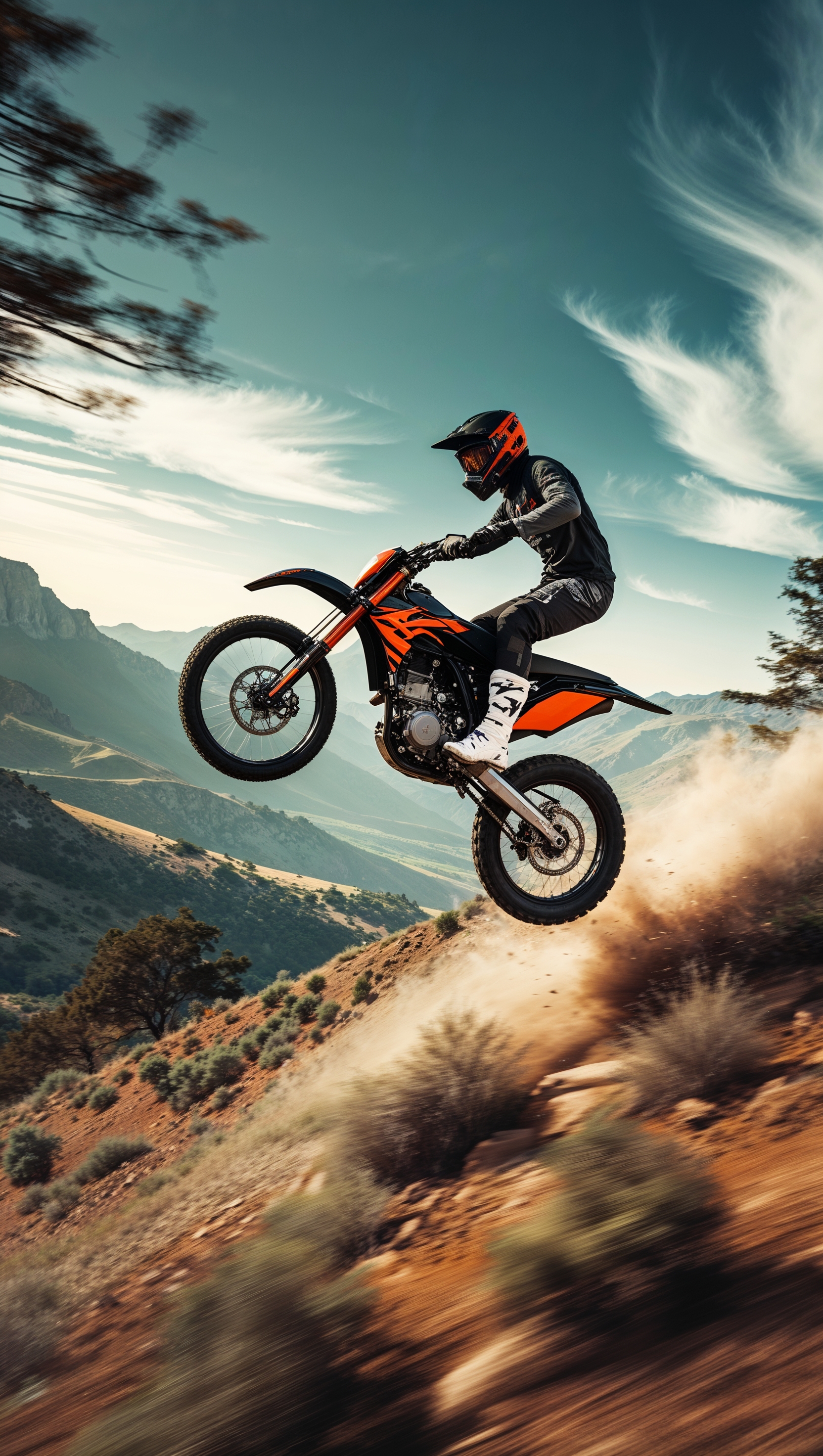 1664x2944 A dirt bike riding on a rugged mountain trail, for an iPhone wallpaper