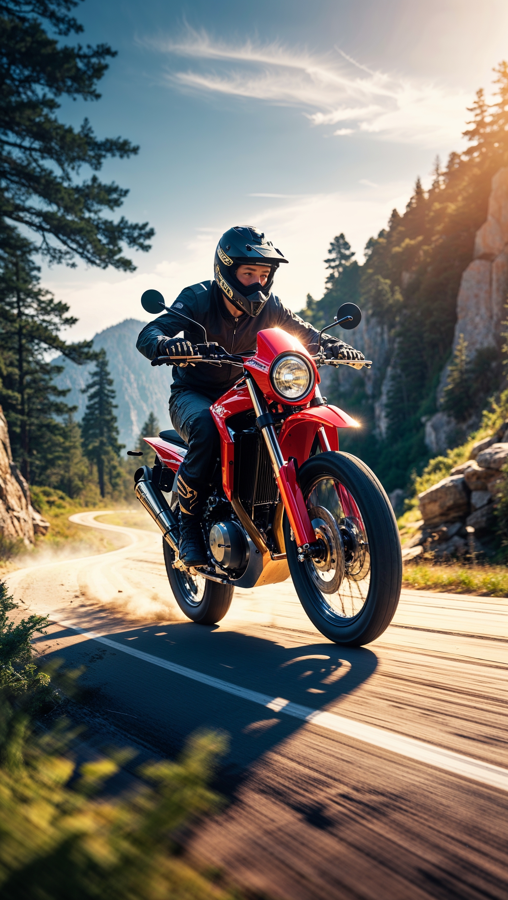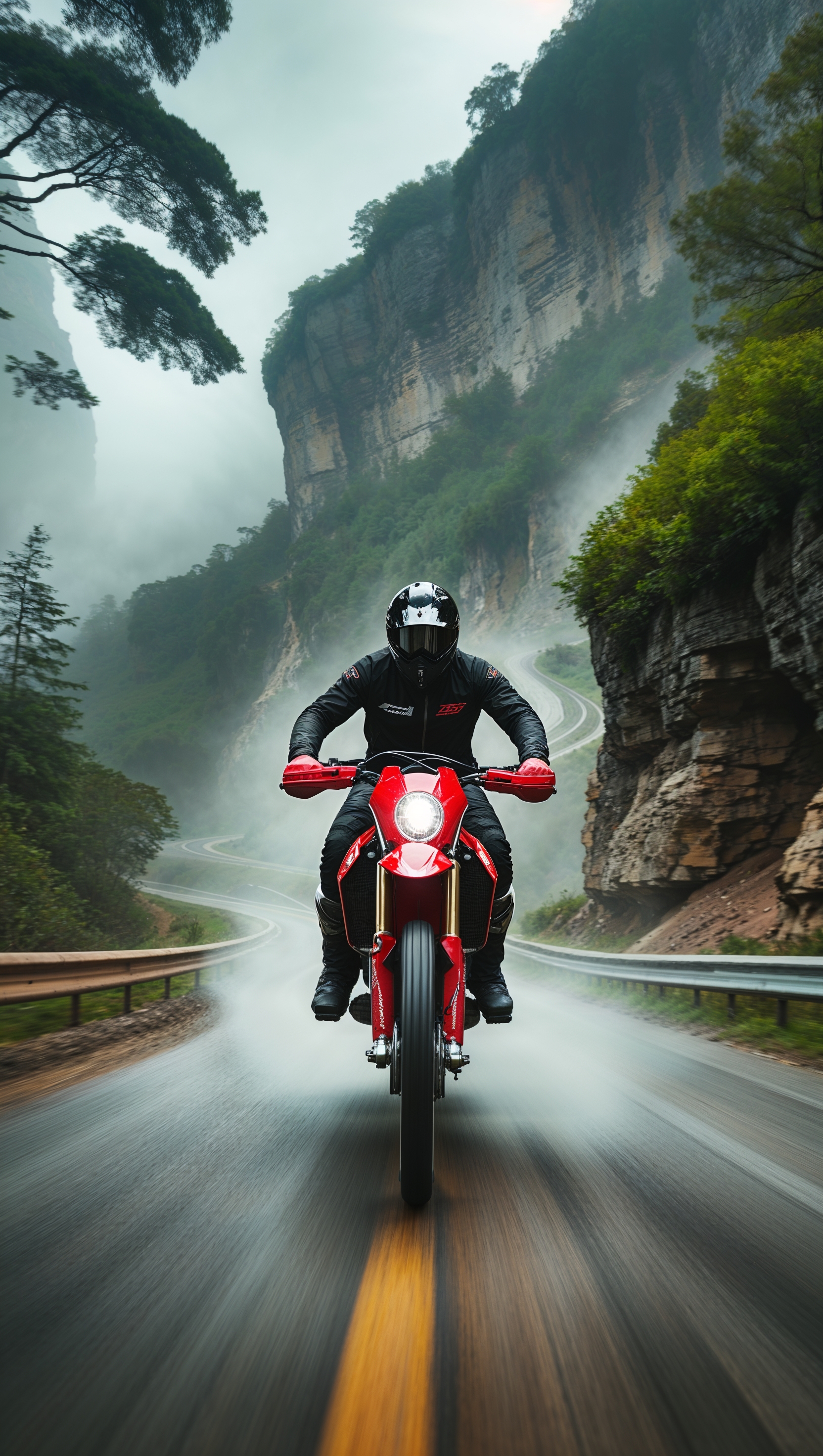 1664x2944 A dirt bike riding on a winding mountain road, for an iPhone wallpaper