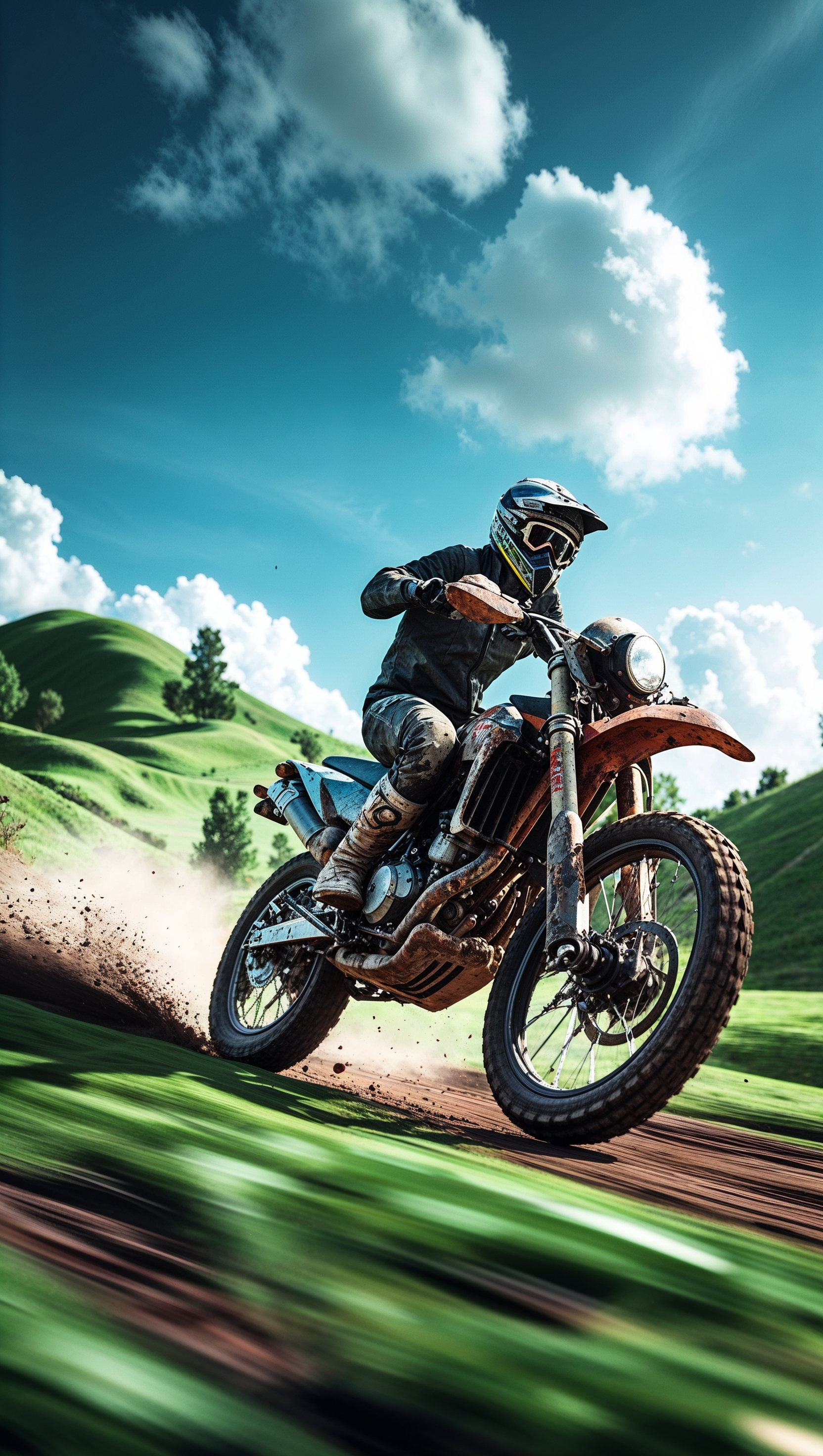 1664x2944 A dirt bike riding through grassy hills, for an iPhone wallpaper