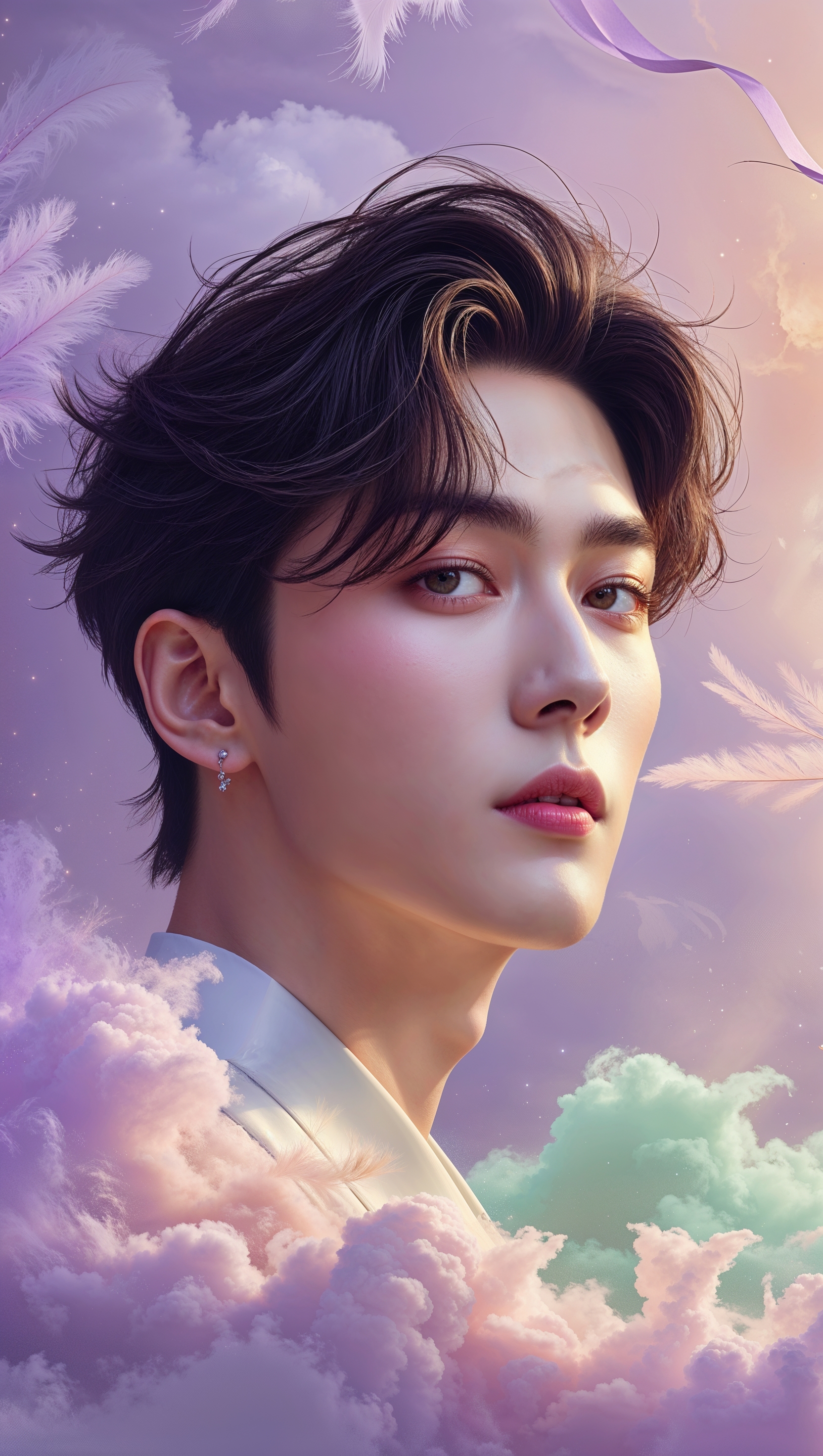 1664x2944 Create an image of Jungkook in a fantasy environment with colorful clouds