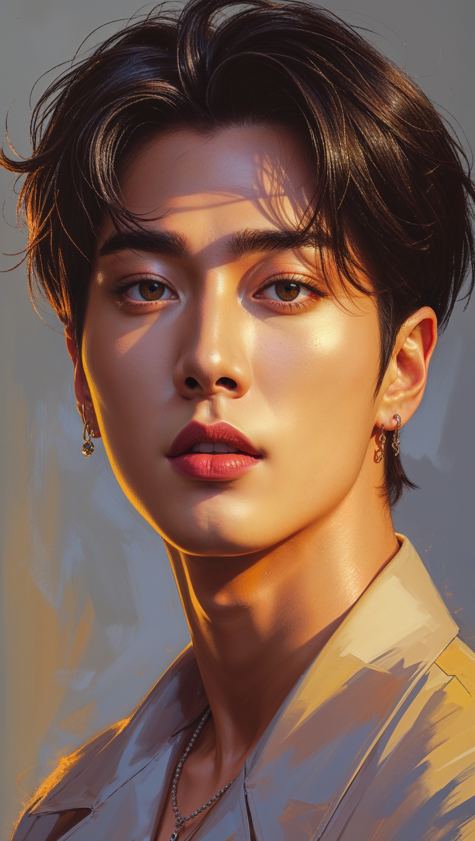 1664x2944 Create an artistic portrait of Jungkook in golden light