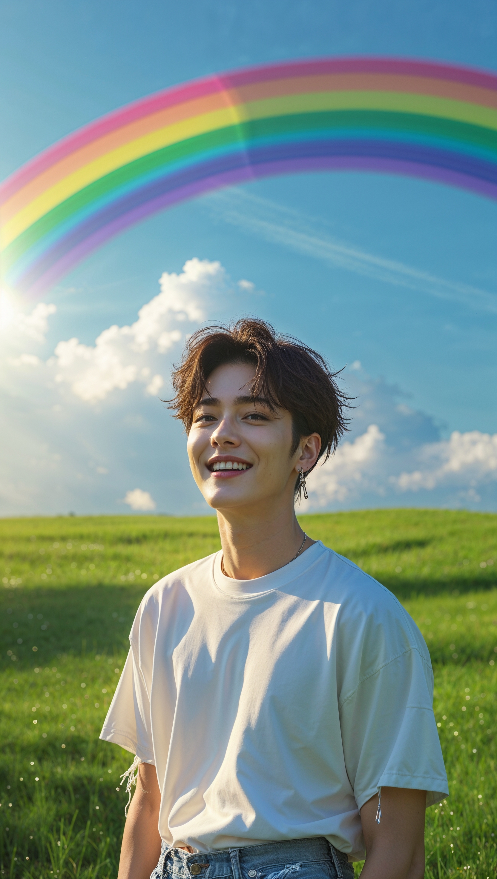 1664x2944 Create a wallpaper with Jungkook and a rainbow in the sky