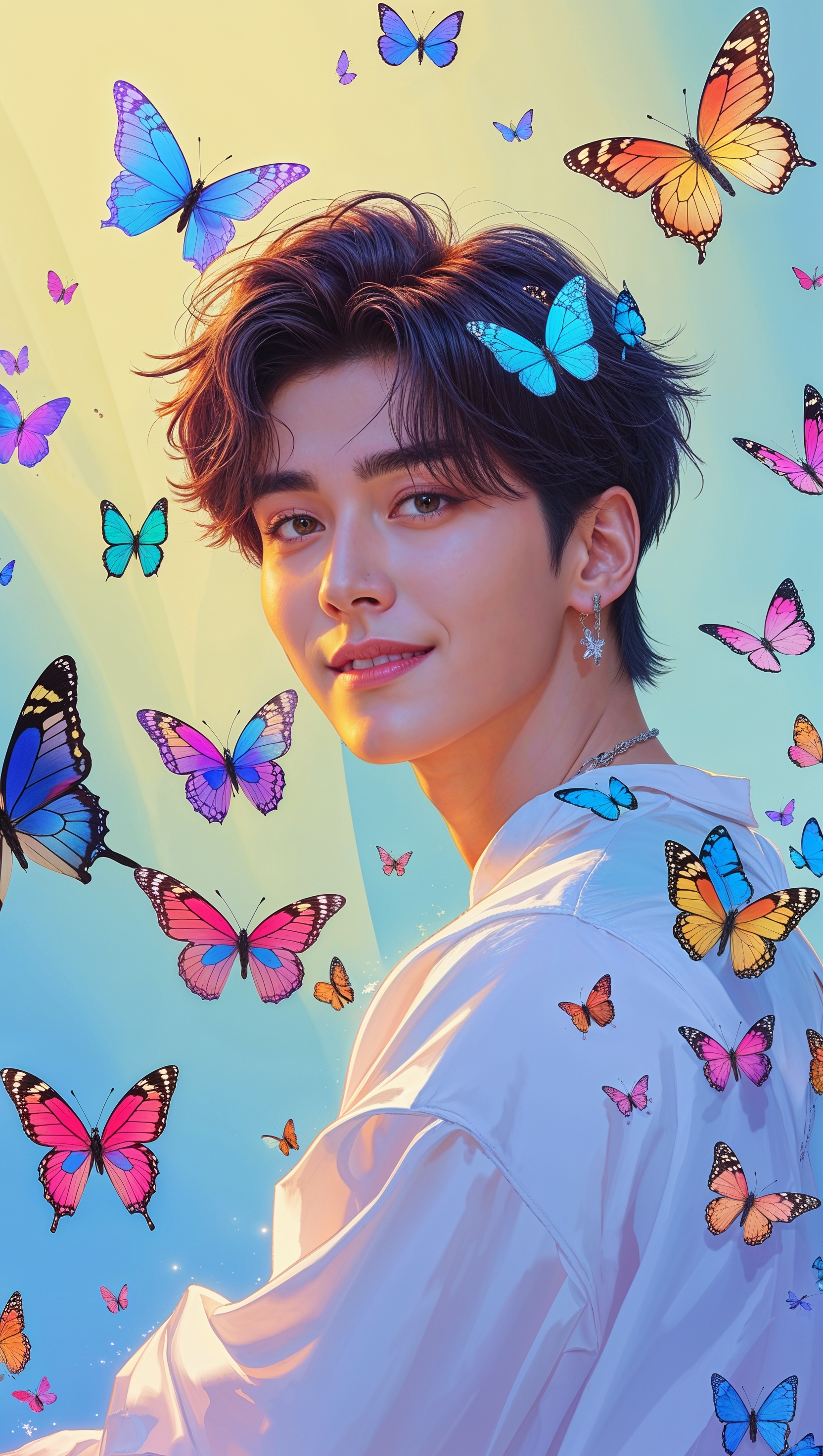 1664x2944 Design a wallpaper with Jungkook and colorful butterflies around him