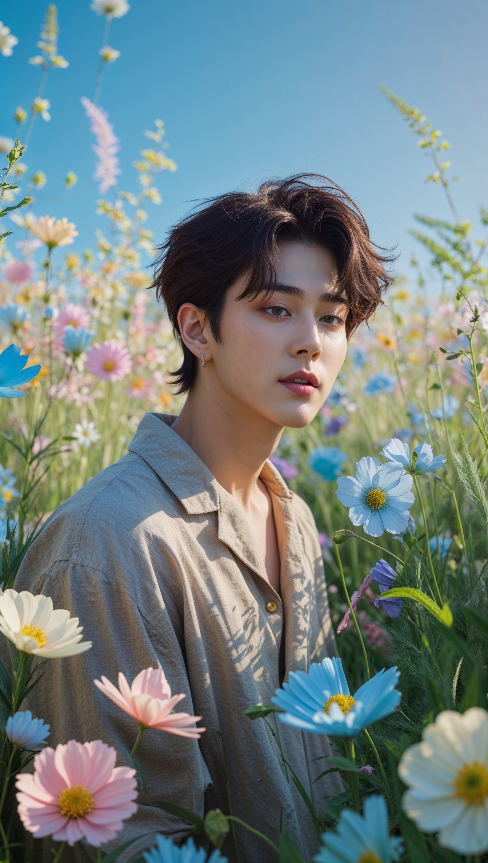 1664x2944 An image of Jungkook among wildflowers in a meadow