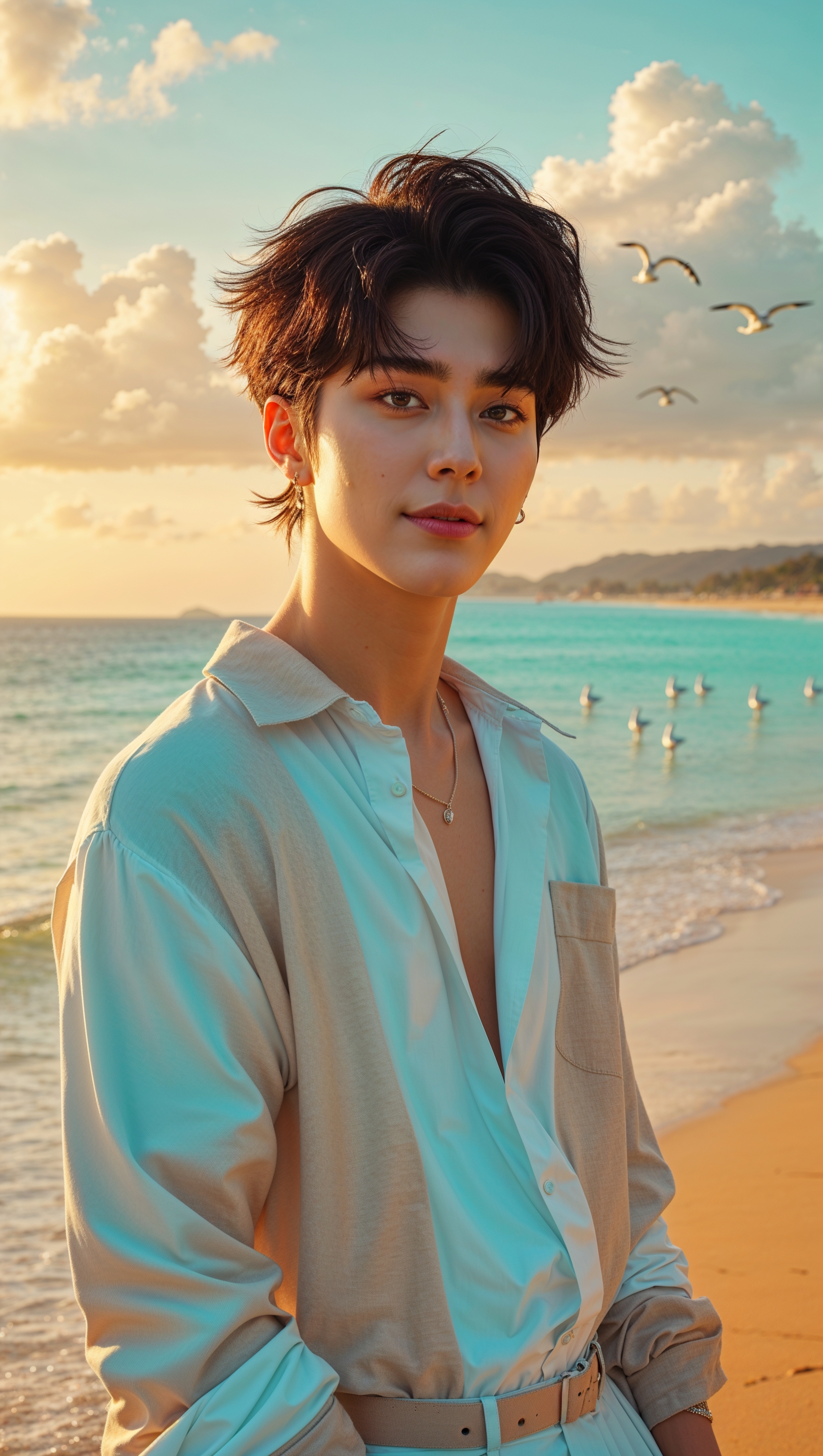 1664x2944 Create a wallpaper with Jungkook by a golden beach