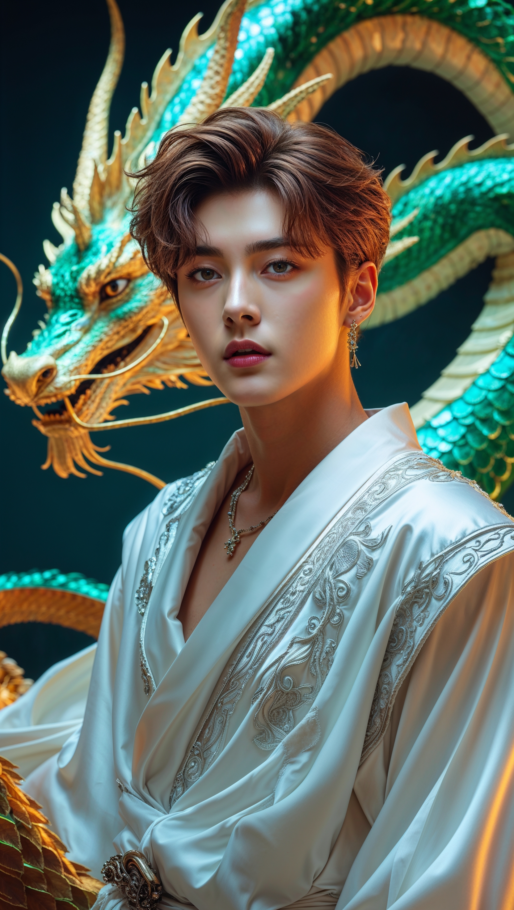 1664x2944 Create an iPhone wallpaper with Jungkook and a mythical dragon in the background