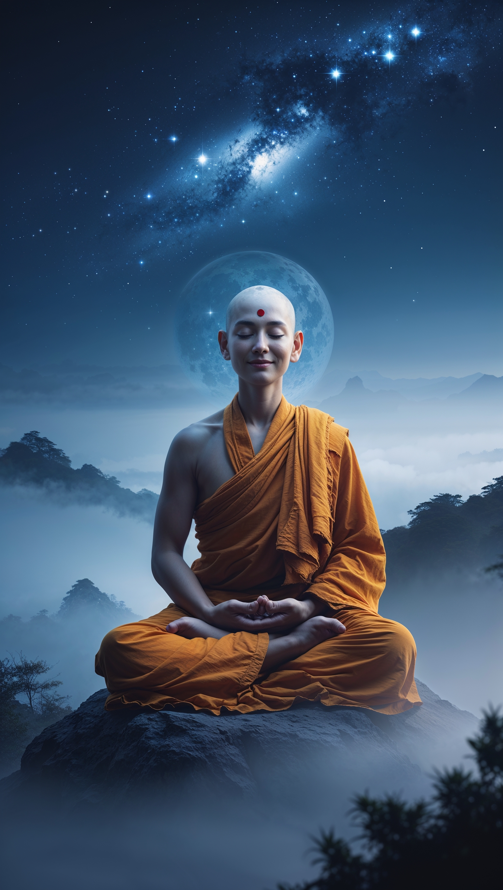 1664x2944 Meditating monk under a starry sky, entering nirvana – peaceful iPhone wallpaper
