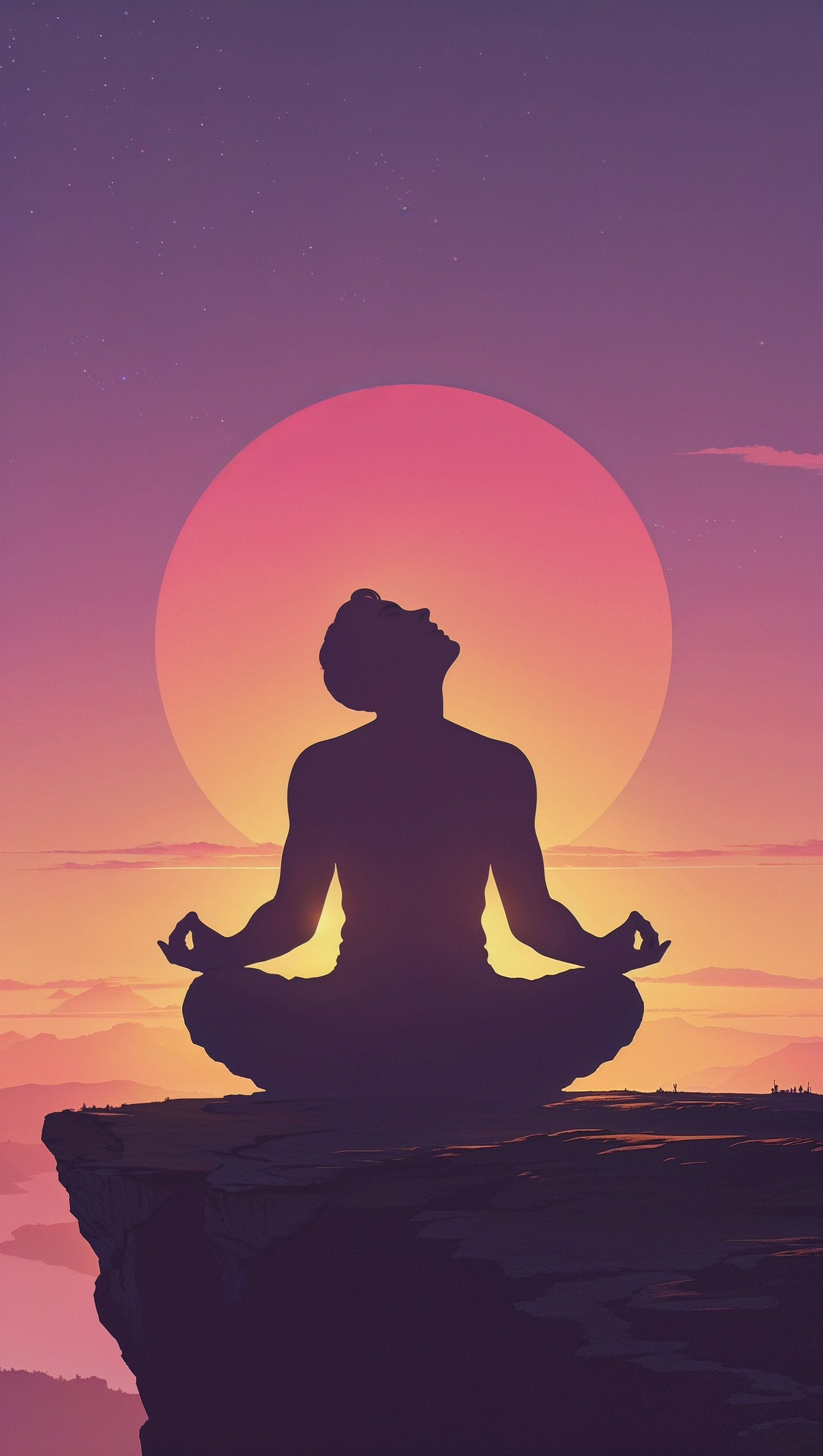 1664x2944 Silhouette of a meditating figure on a cliff during sunrise – iPhone background inspired by nirvana