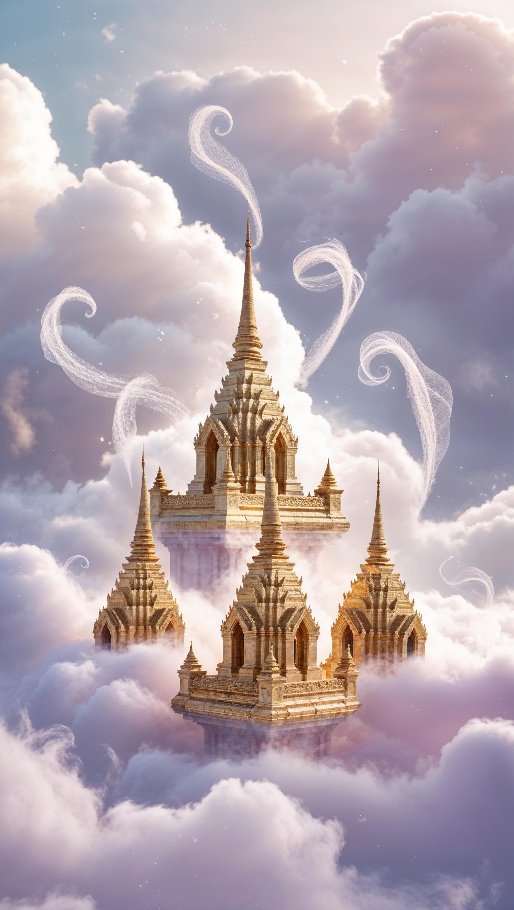 1664x2944 Floating temples in clouds – dreamy nirvana scene