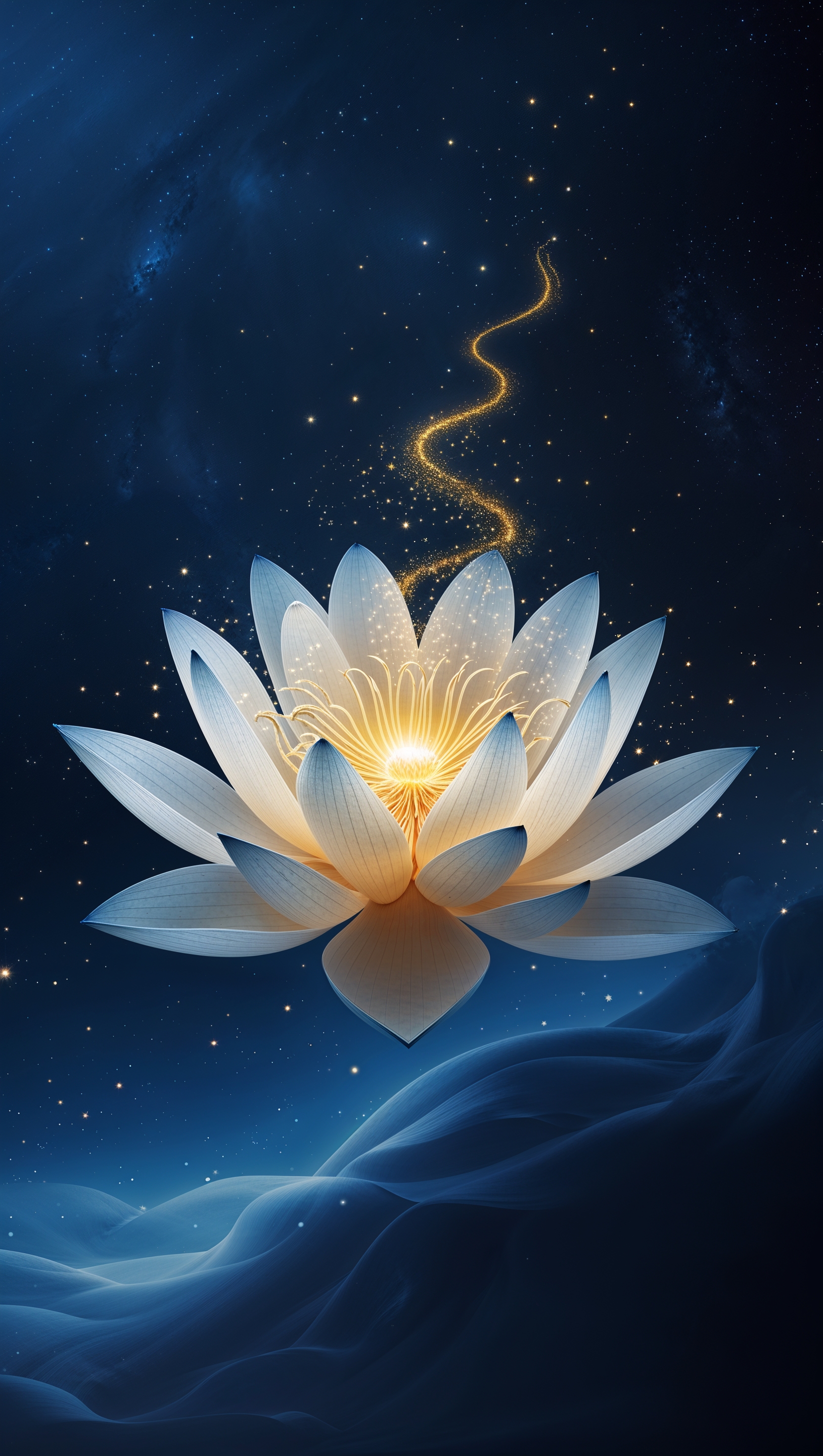 1664x2944 A glowing lotus flower floating in space, representing spiritual awakening – Nirvana iPhone wallpaper