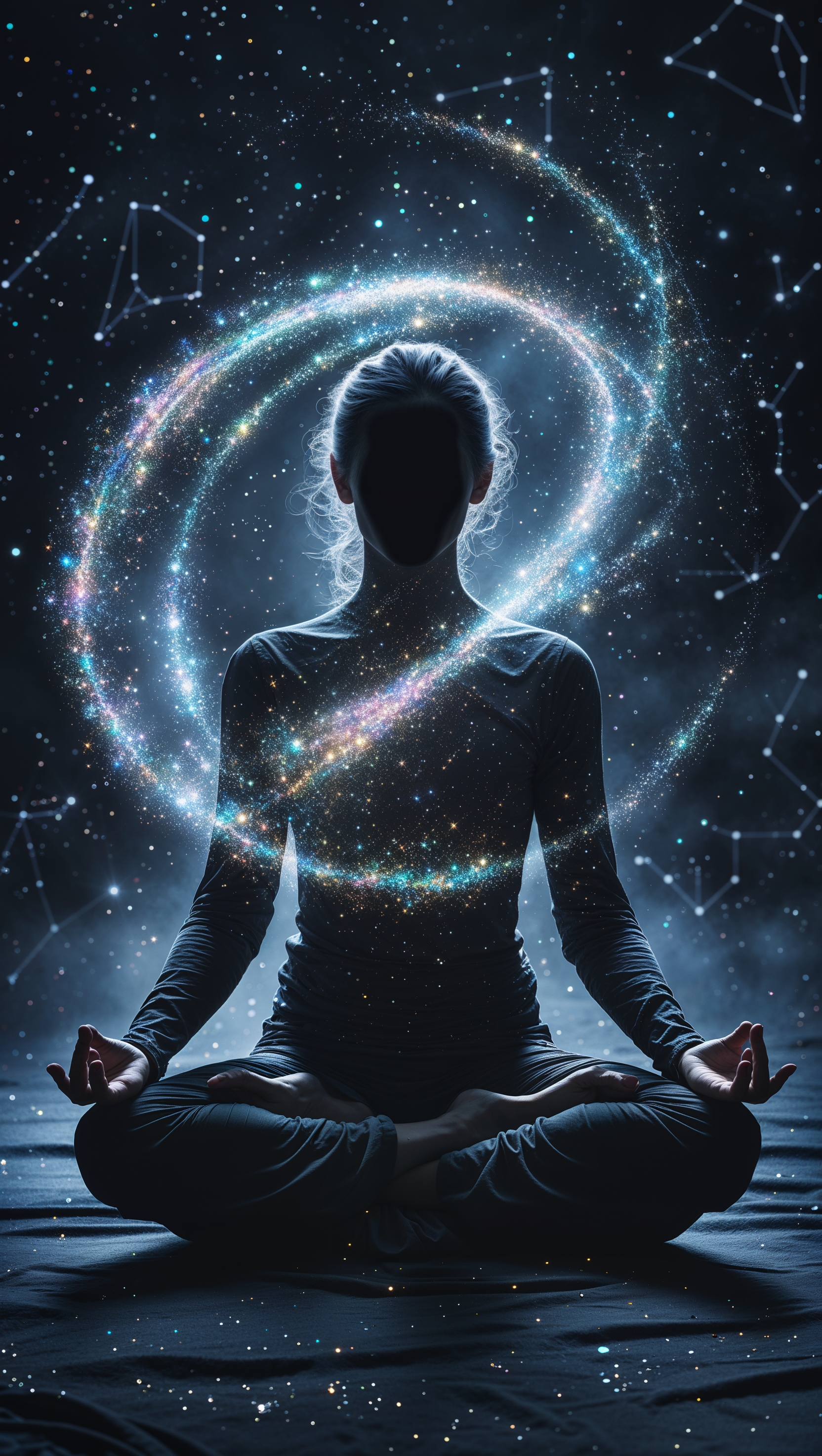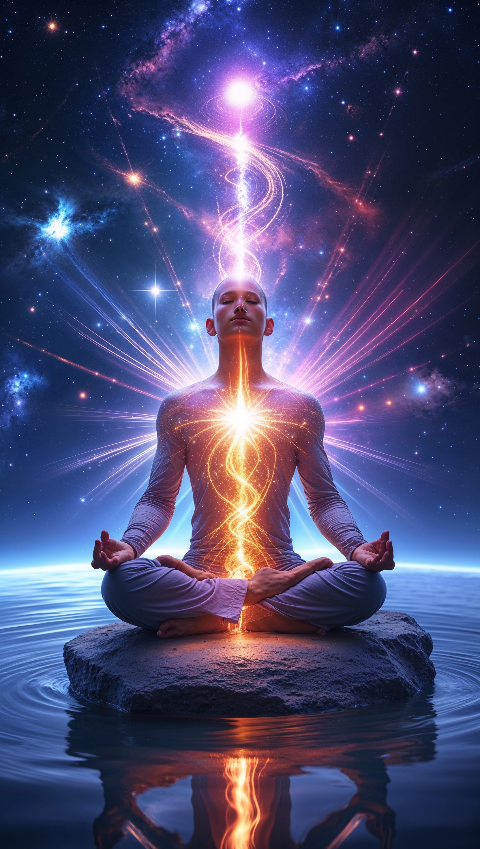 1664x2944 Cosmic energy flowing through a meditating person – spiritual awakening