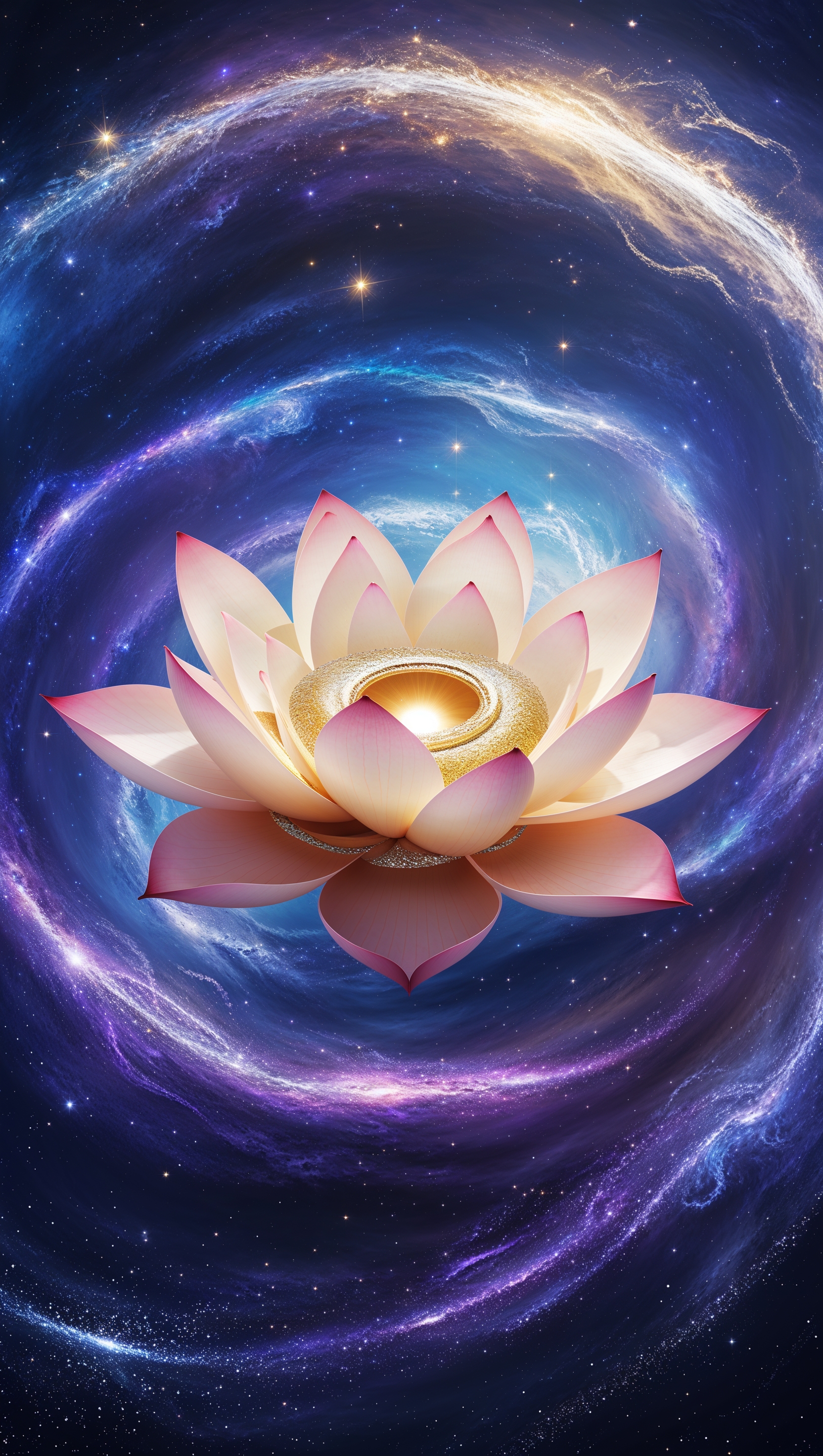 1664x2944 Spiral galaxy with lotus center – cosmic nirvana symbolism