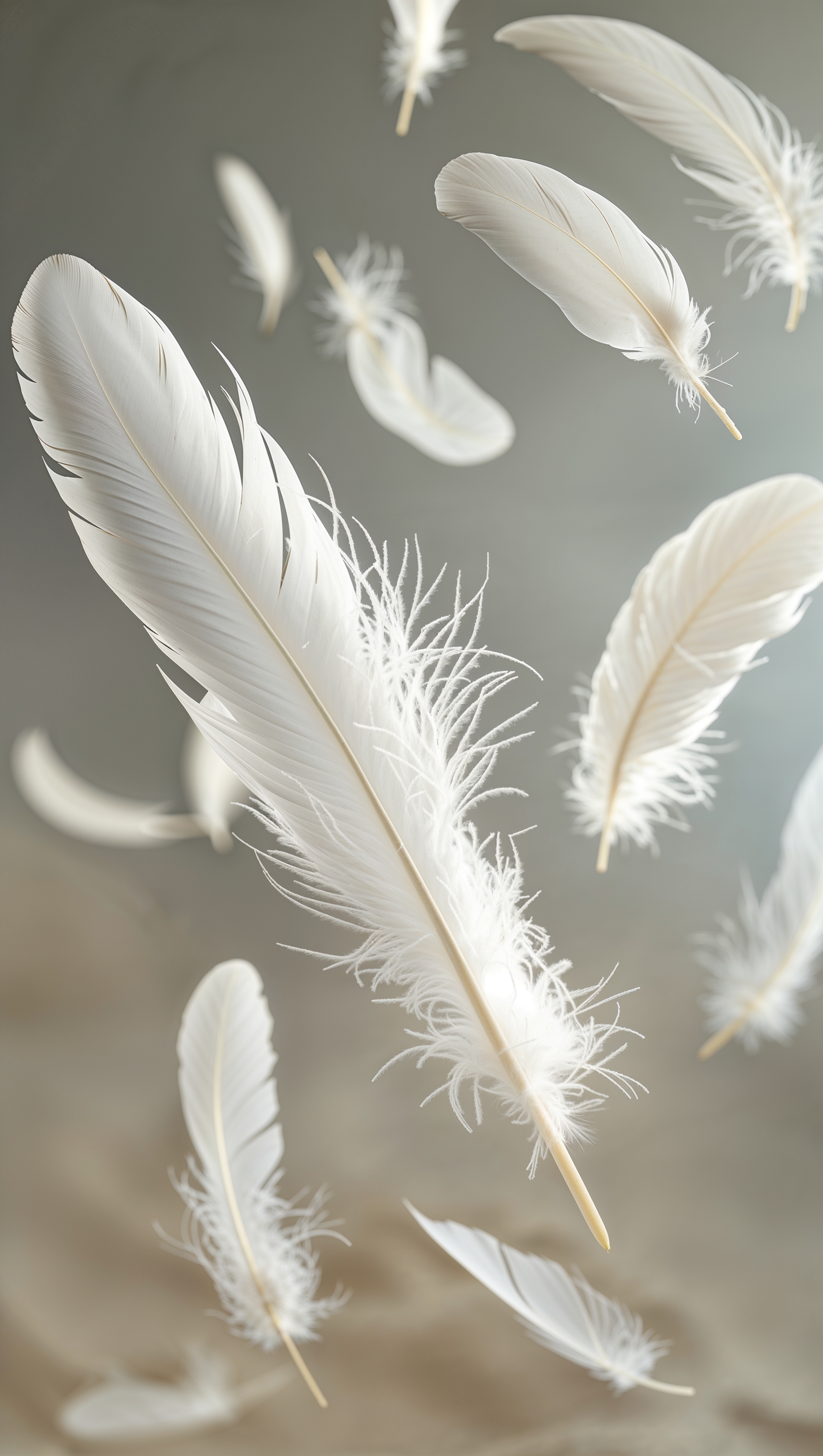 1664x2944 Floating feathers in still air – soft and peaceful nirvana concept