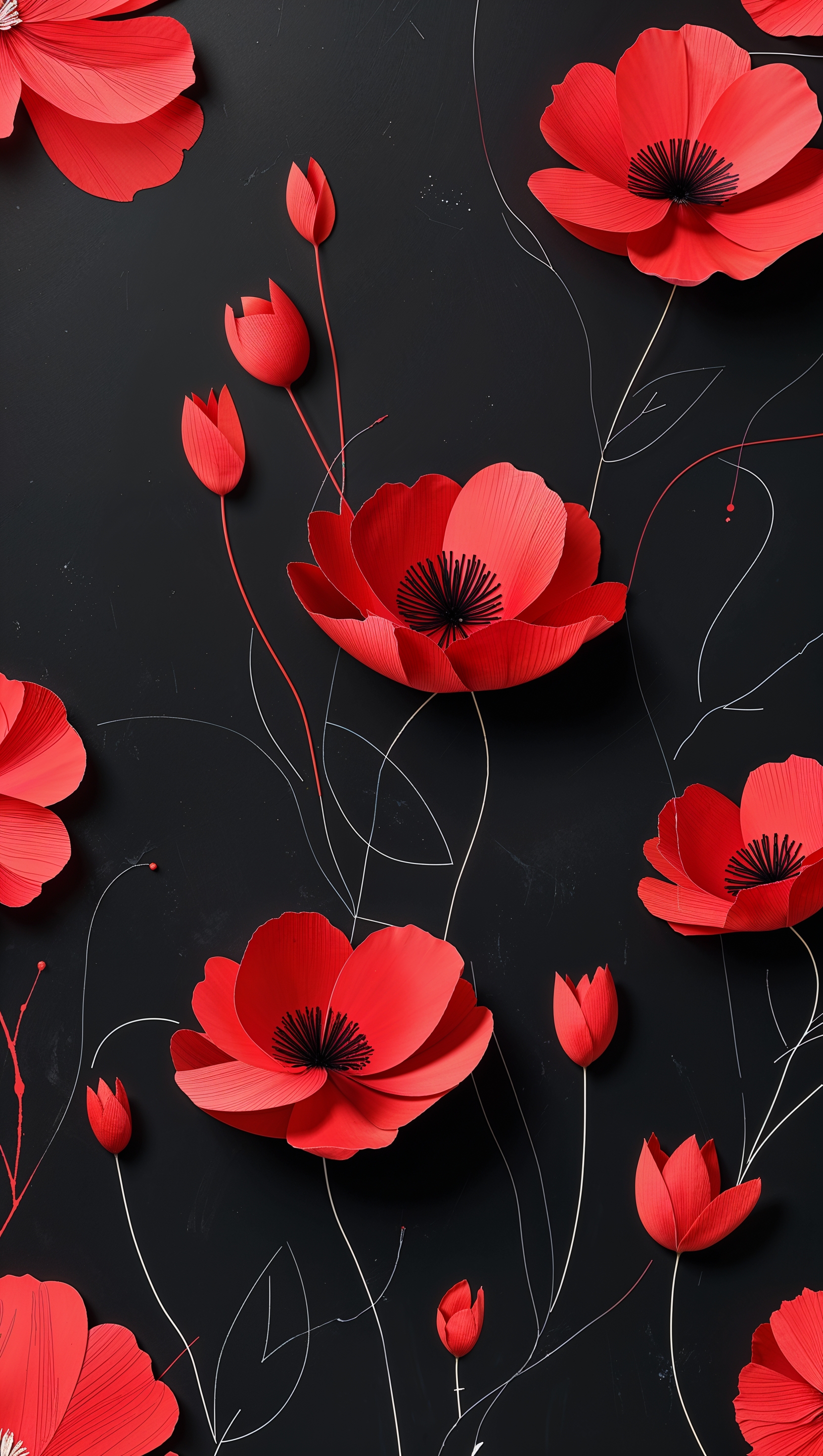 1664x2944 Red flames dancing in darkness with a minimalistic design