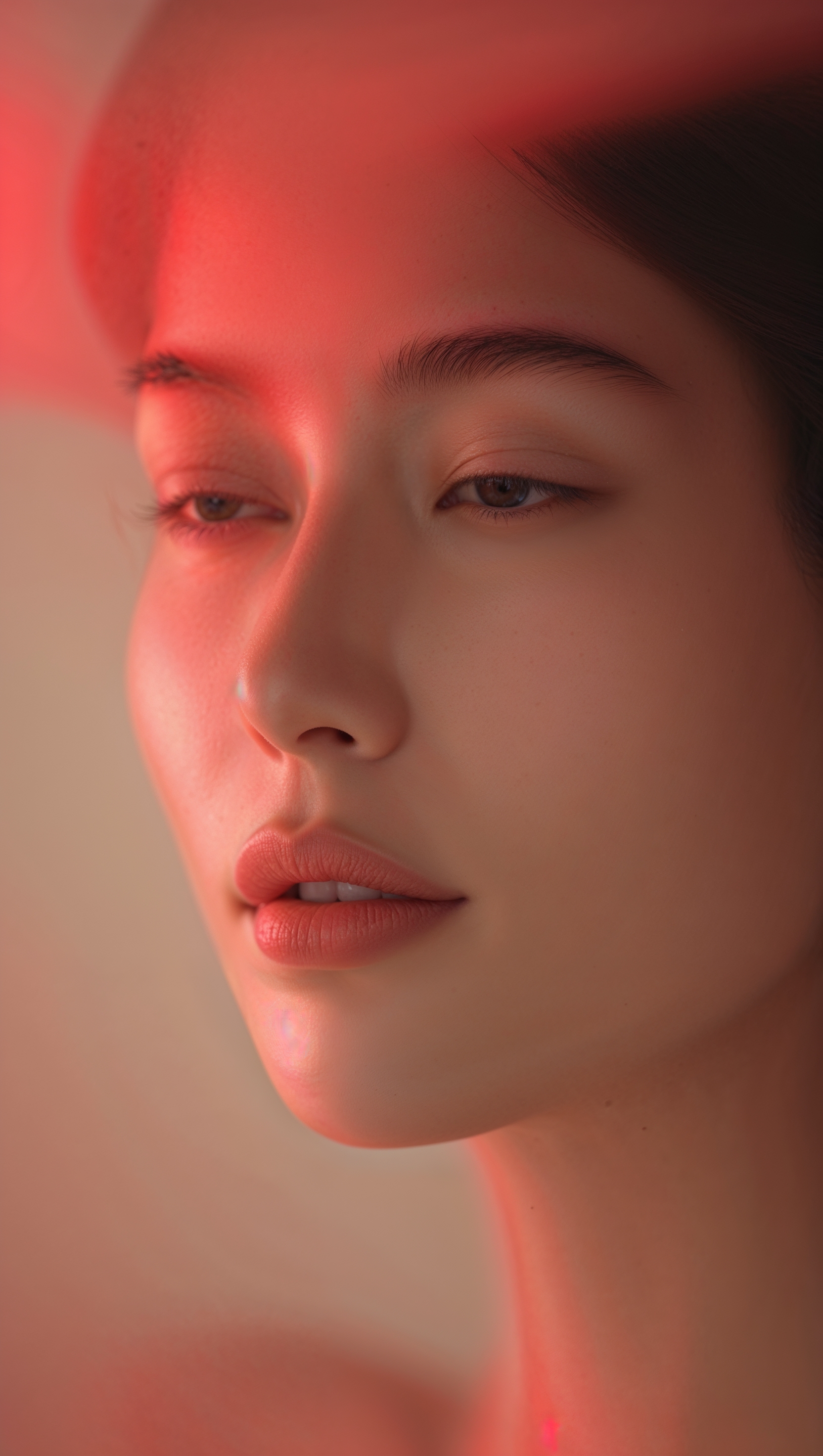 1664x2944 Half-blurred face of a woman with soft red light in background