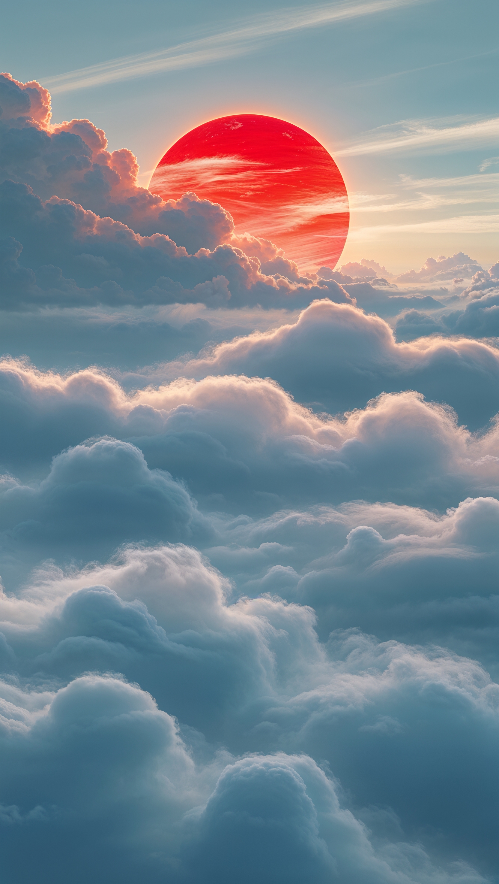 1664x2944 Red sun behind clouds with a calm and mysterious mood
