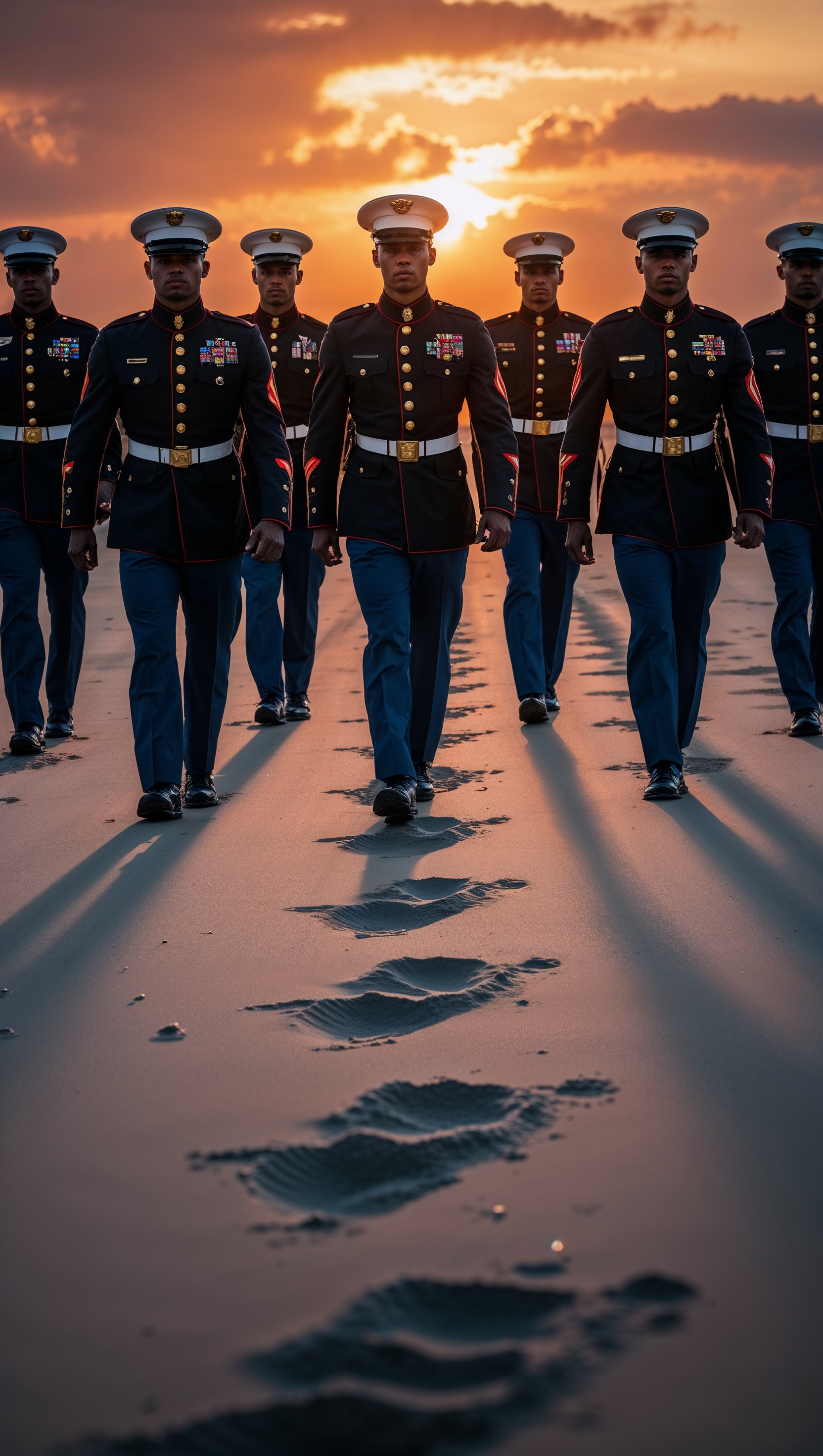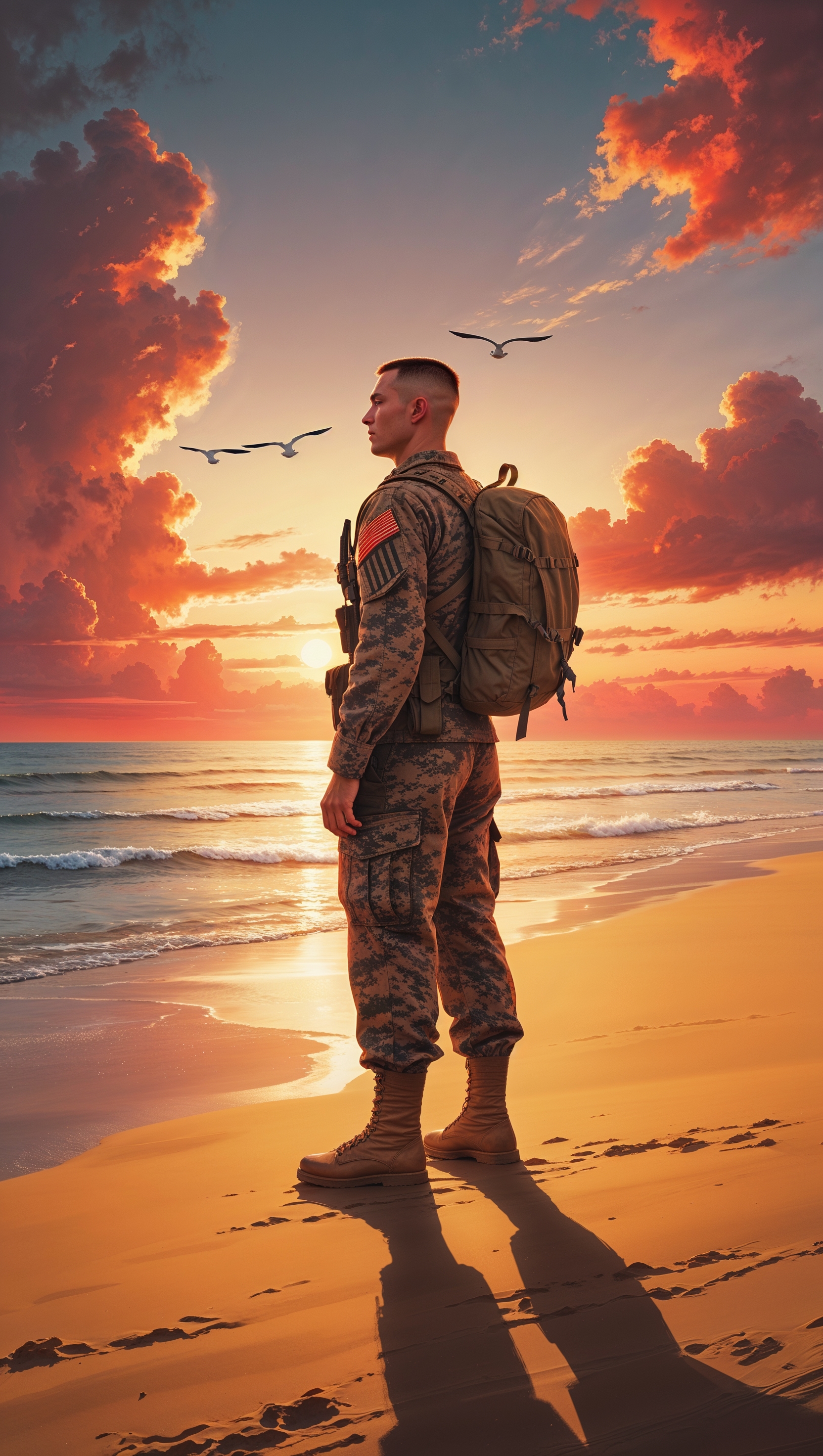 1664x2944 Design of a marine corps on the beach with a sunset background