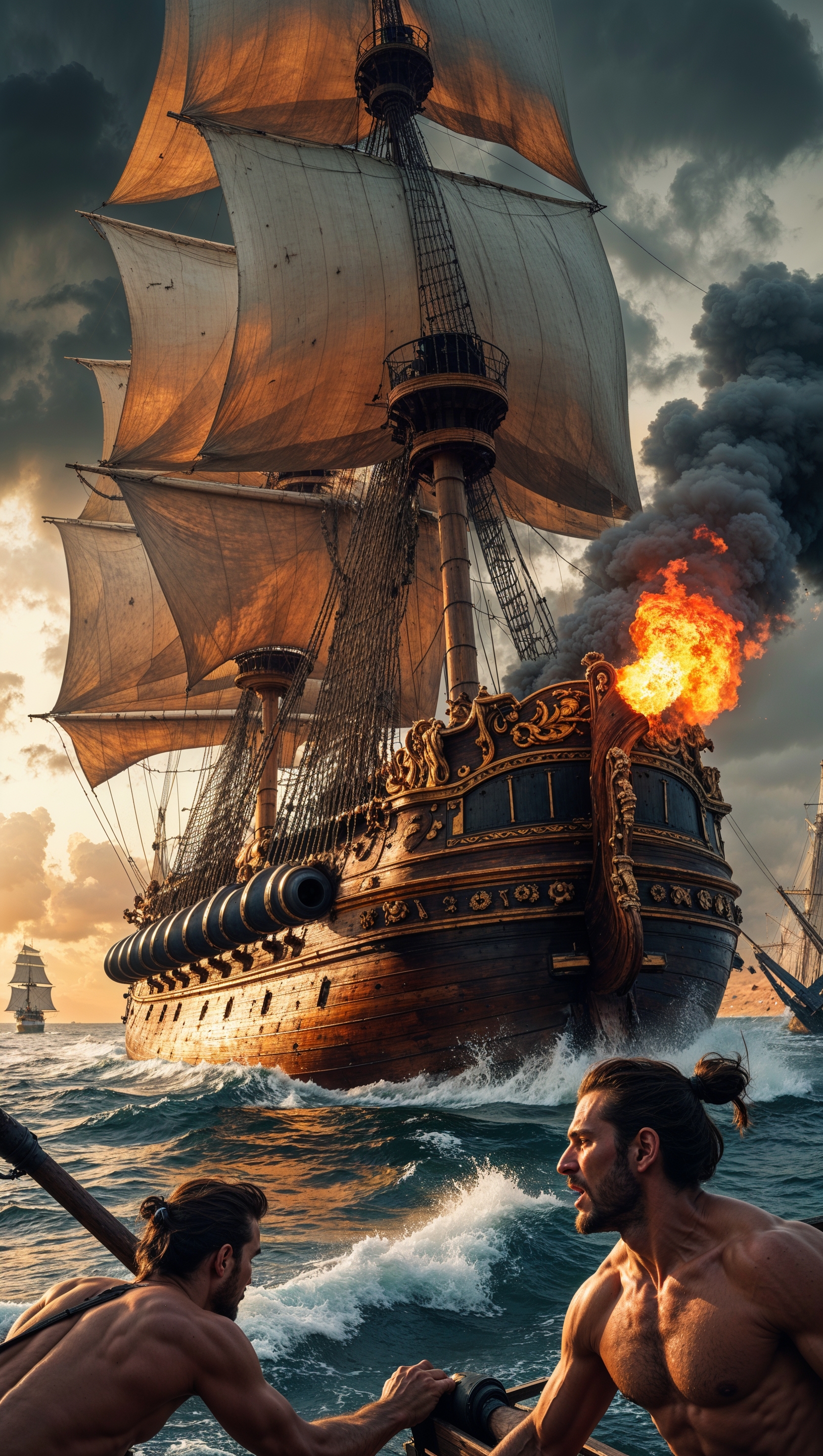 1664x2944 An image of a warship firing cannonballs at the enemy