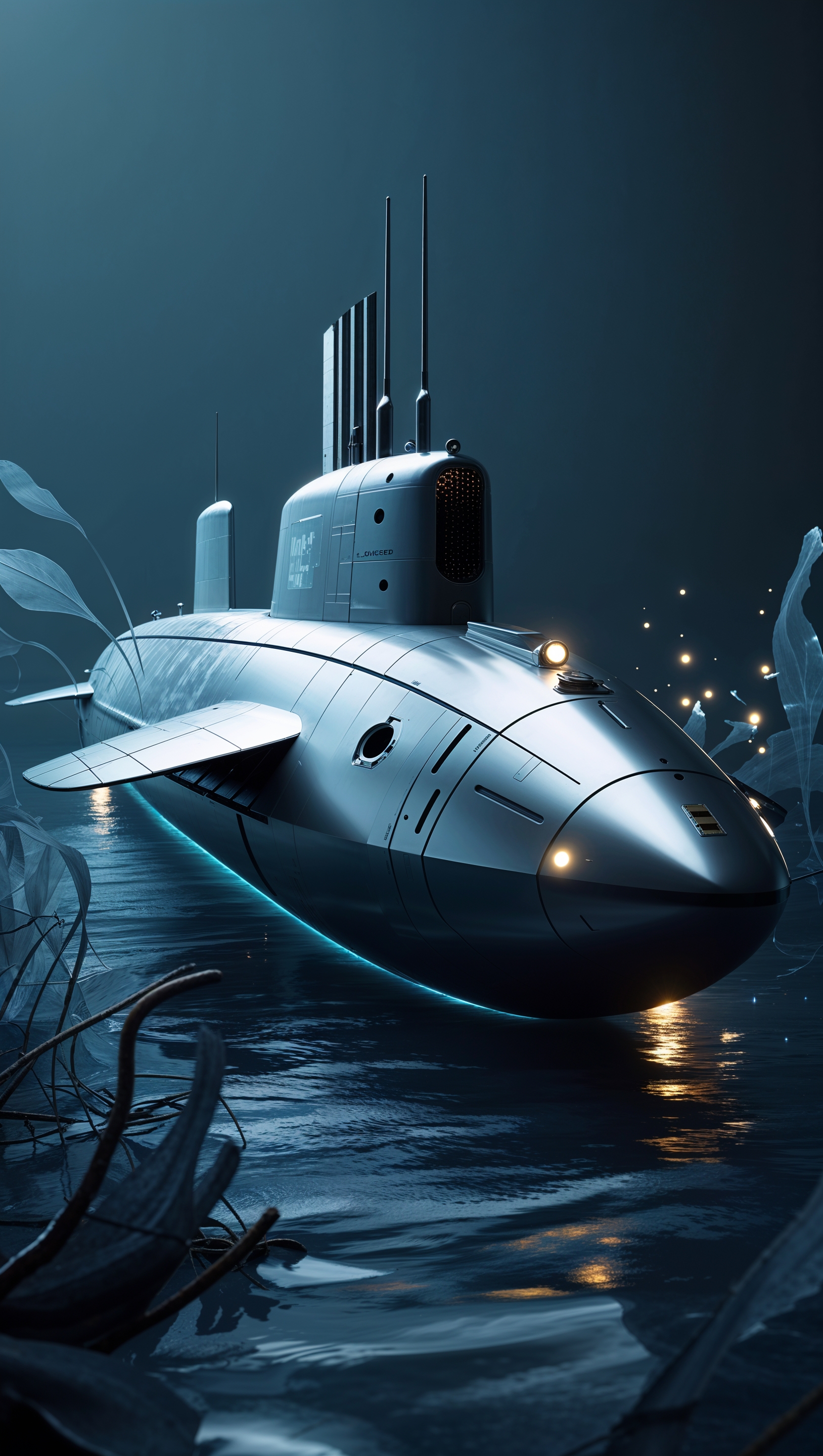 1664x2944 iPhone wallpaper with the design of an advanced submarine