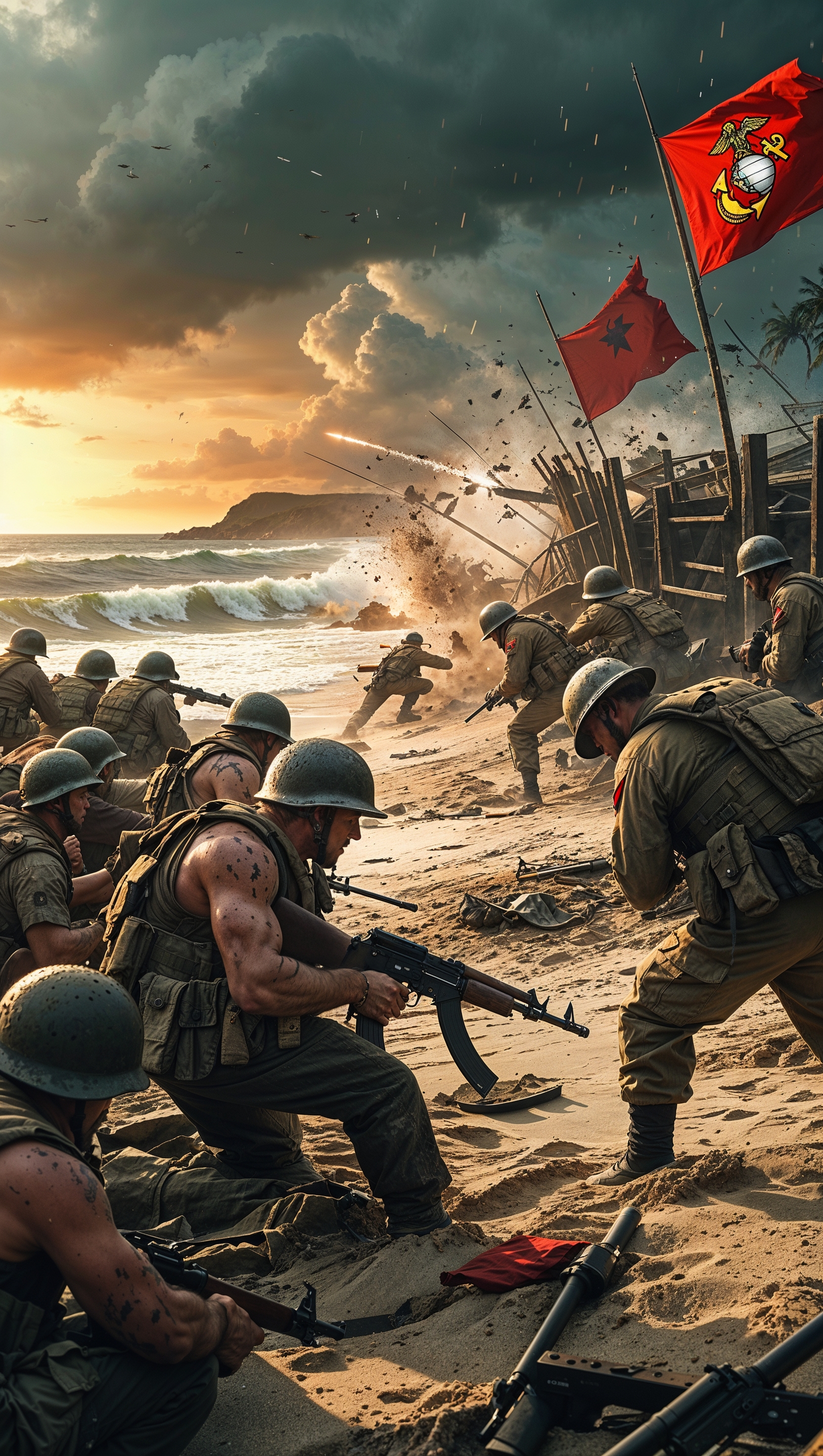 1664x2944 An image of marine forces fighting the enemy on the beach