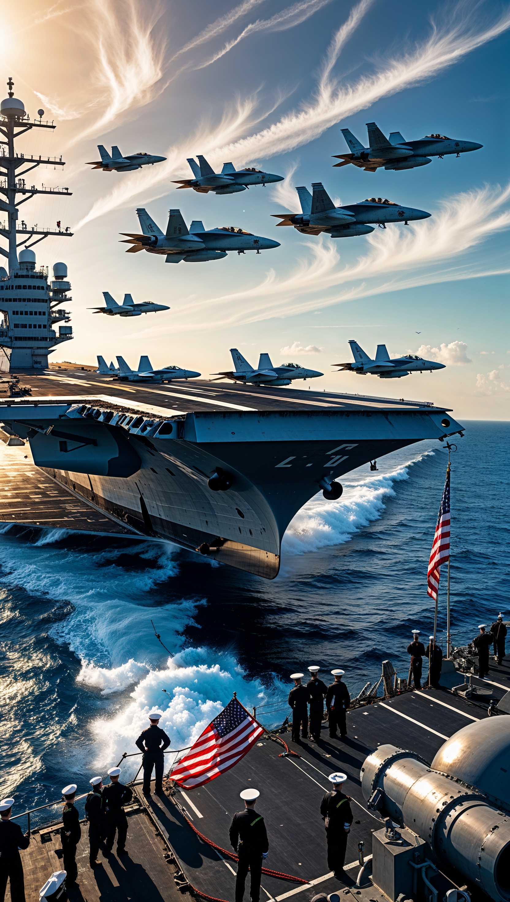 1664x2944 An image of an aircraft carrier launching planes into the sky