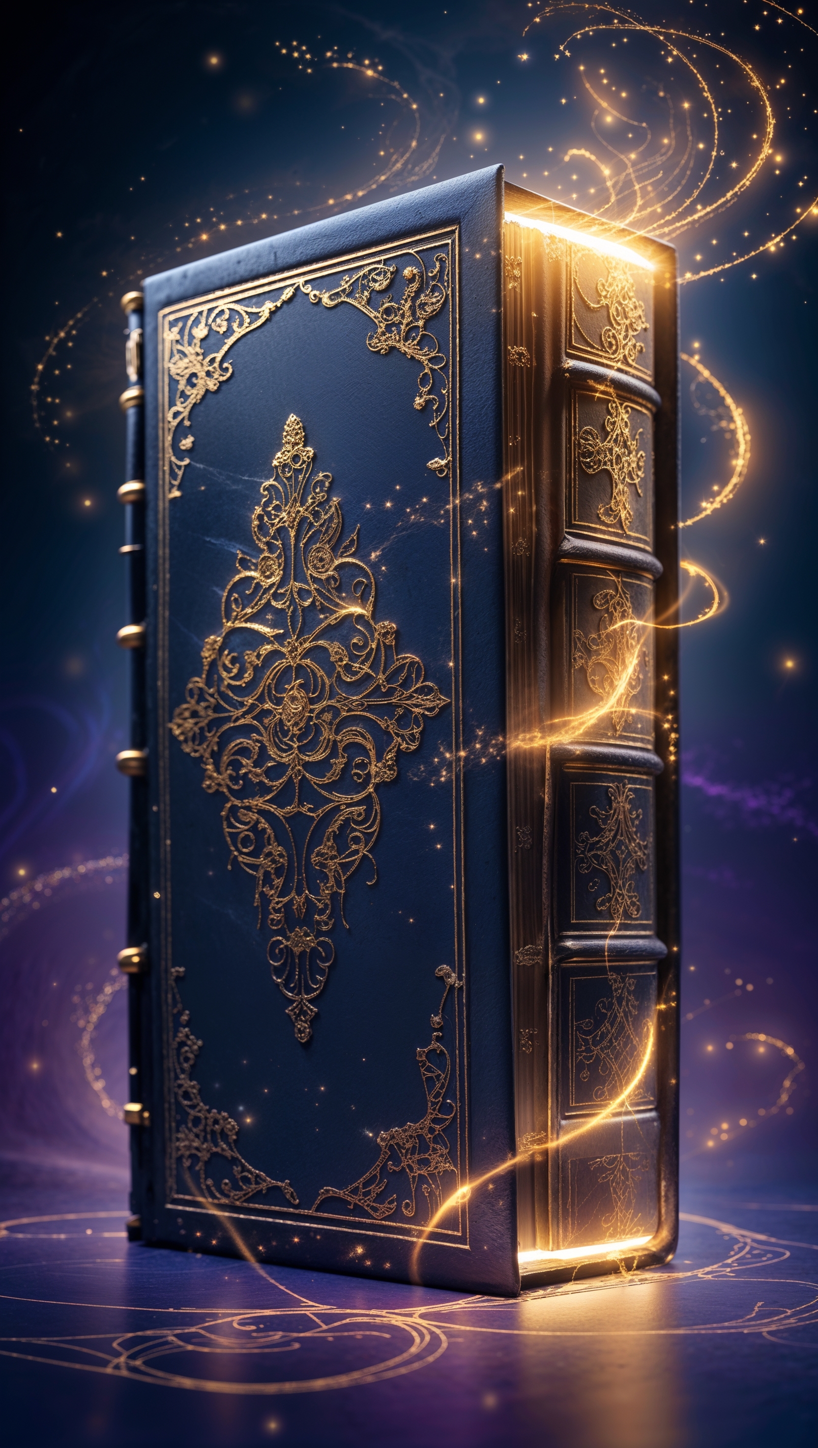 1664x2944 A glowing book emitting light, containing secrets of destiny