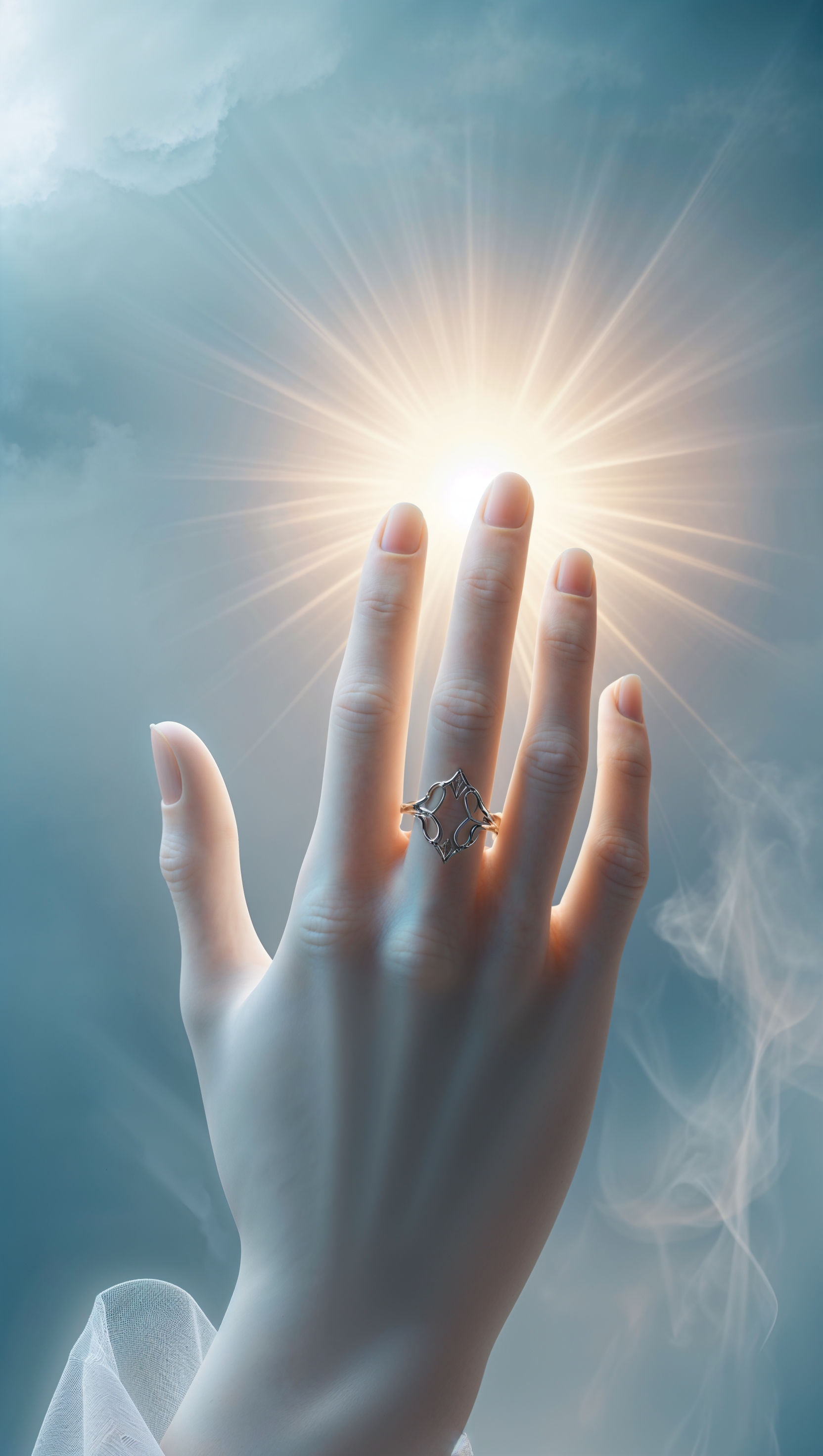 1664x2944 A human hand touching the light, symbolizing change of destiny