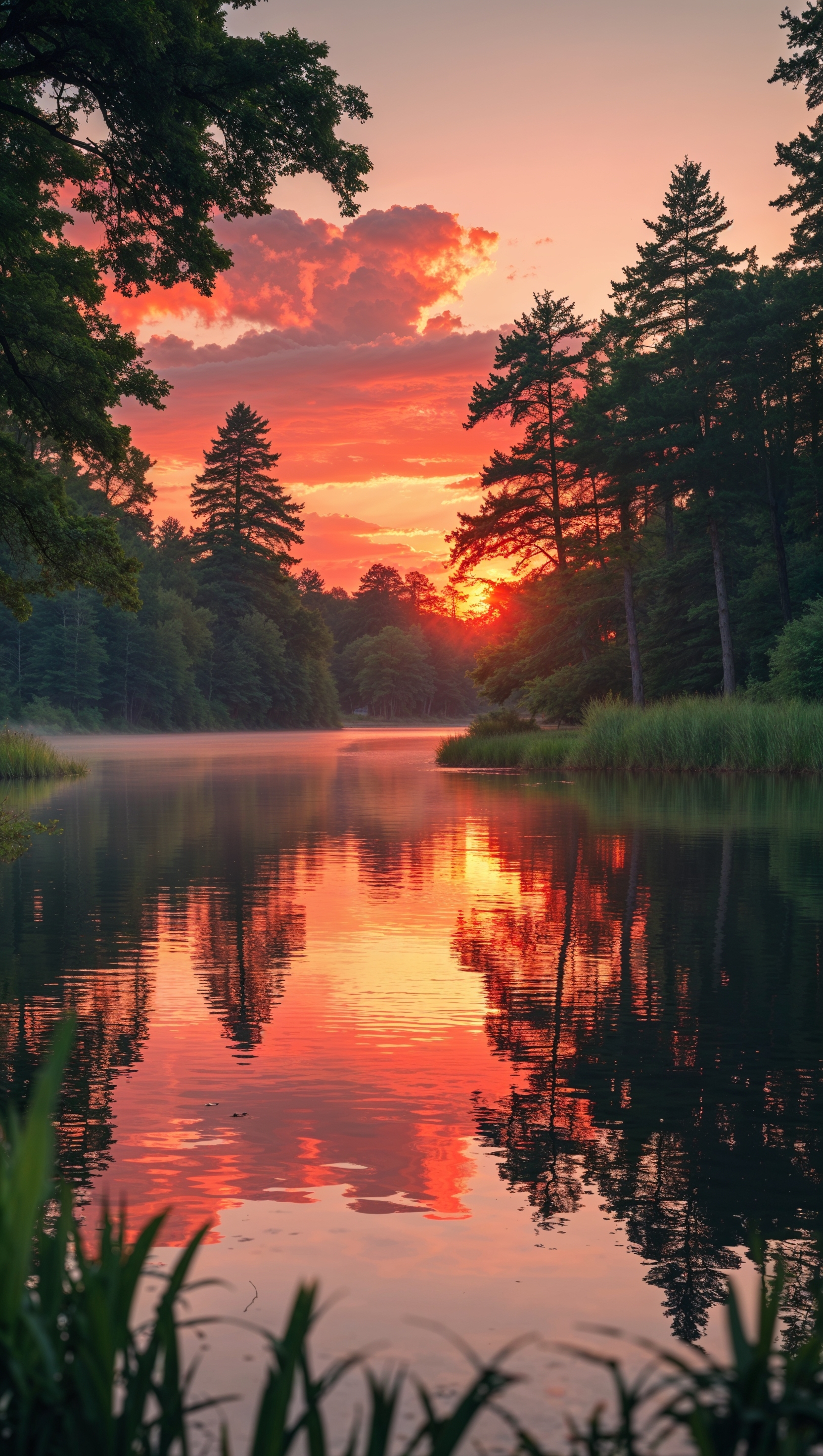 1664x2944 Sunset over Ohio State's Mirror Lake, romantic and warm tones, iPhone wallpaper