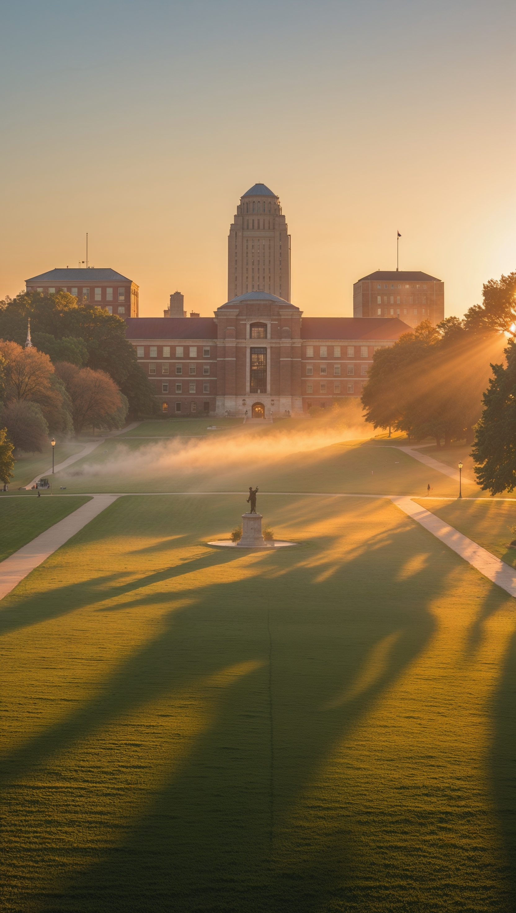 1664x2944 Ohio State Oval at sunrise, peaceful and golden light, iPhone wallpaper